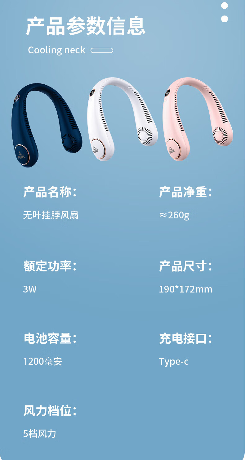 商品名称:匹克 风驰1S挂脖风扇 3W YE34408