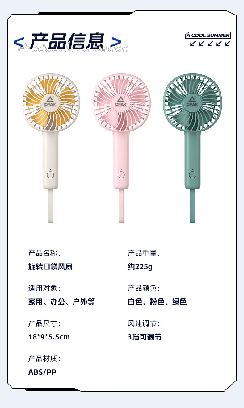 商品名称:匹克 口袋折叠风扇 YE34407