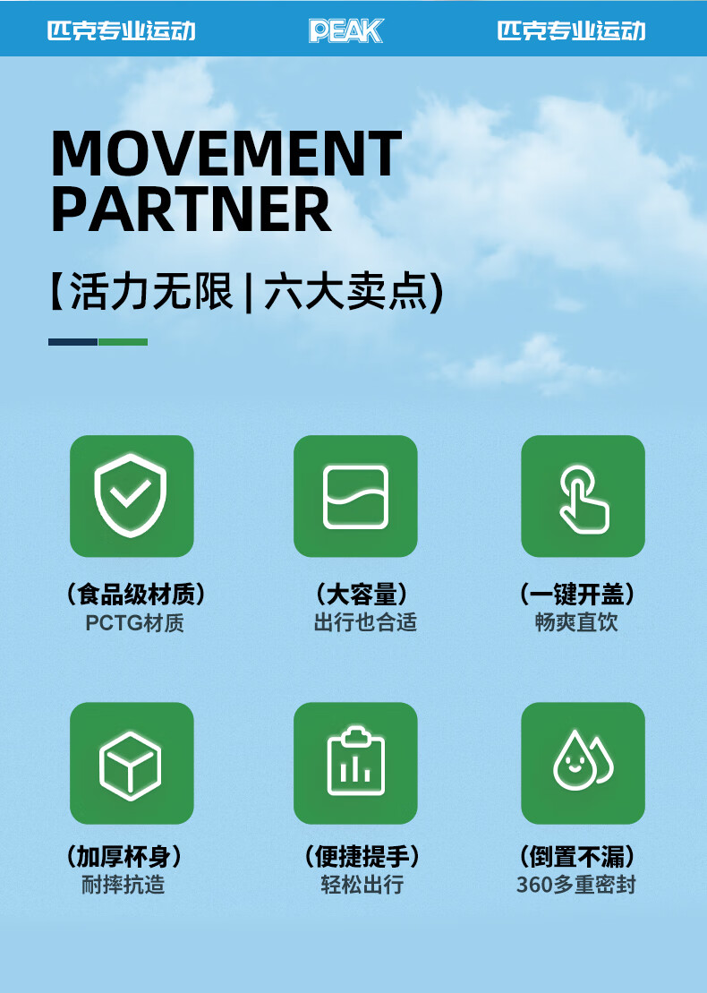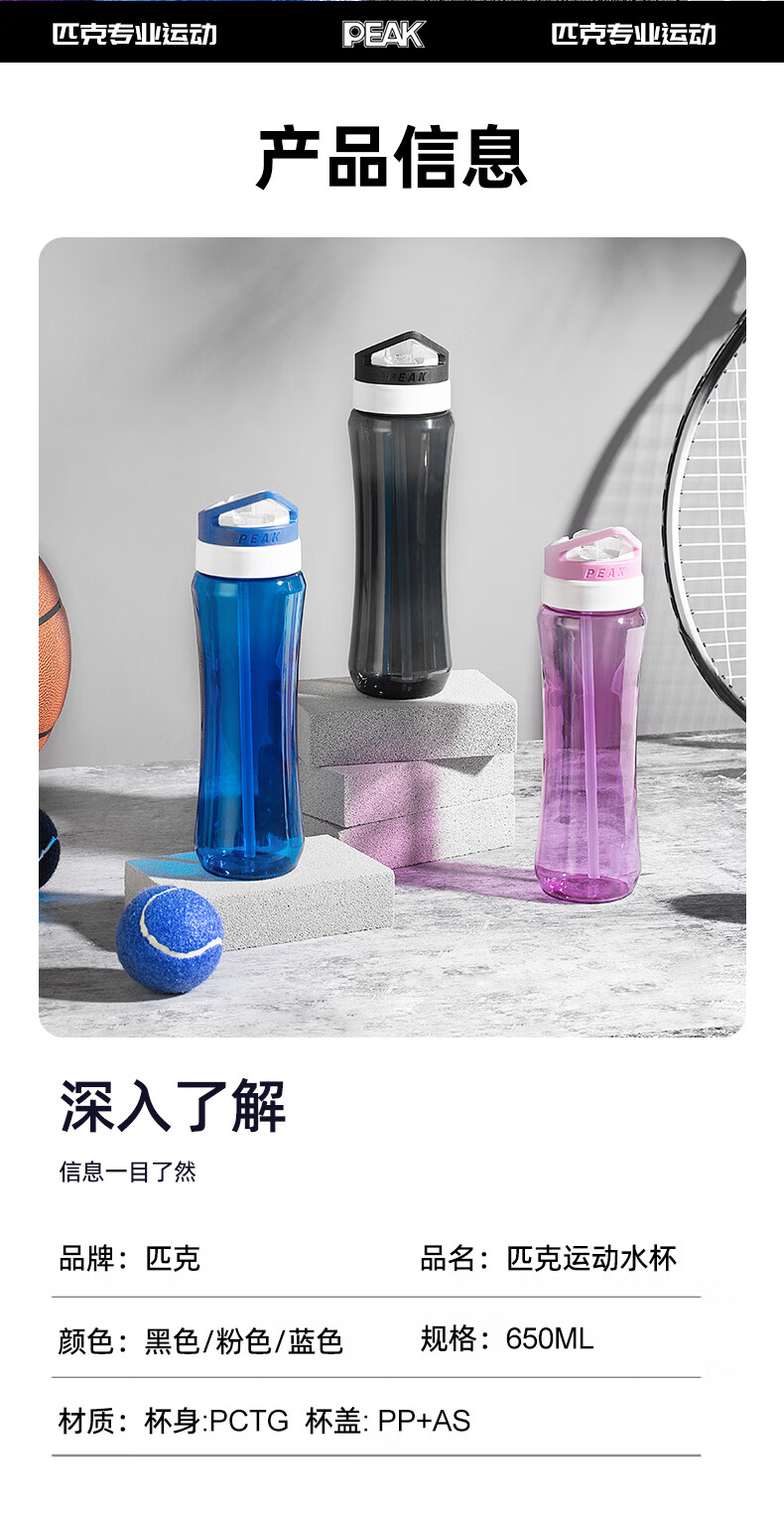 商品名称:匹克 运动水杯 650mL YAZ4110