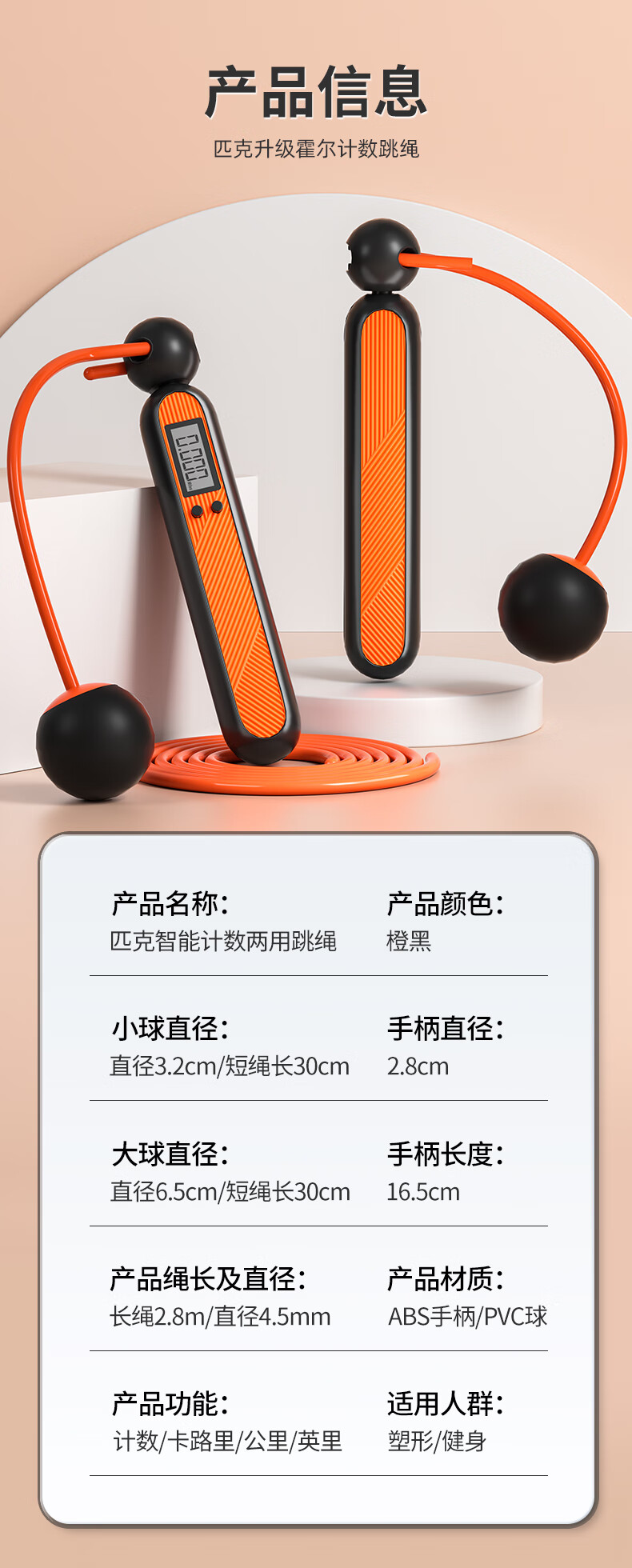 商品名称:匹克 计数跳绳两用款(长绳+小球) YWZ4013