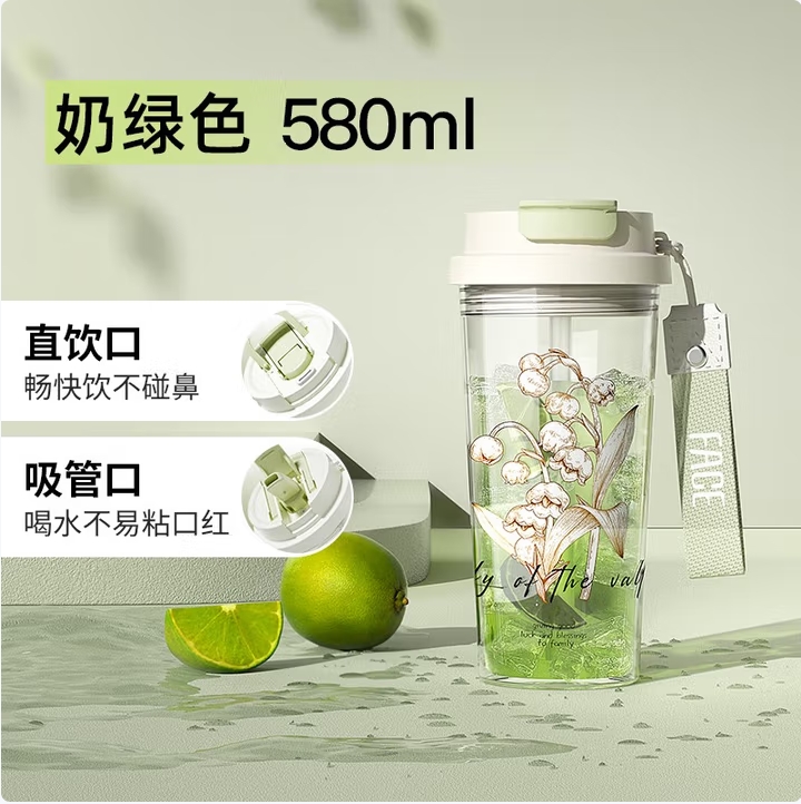 FACE 铃兰双饮手提吸管杯 580ml FA-KP58E