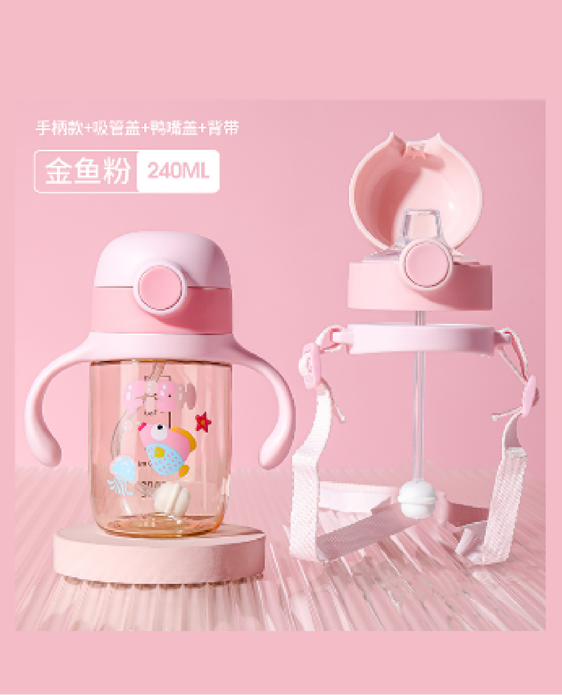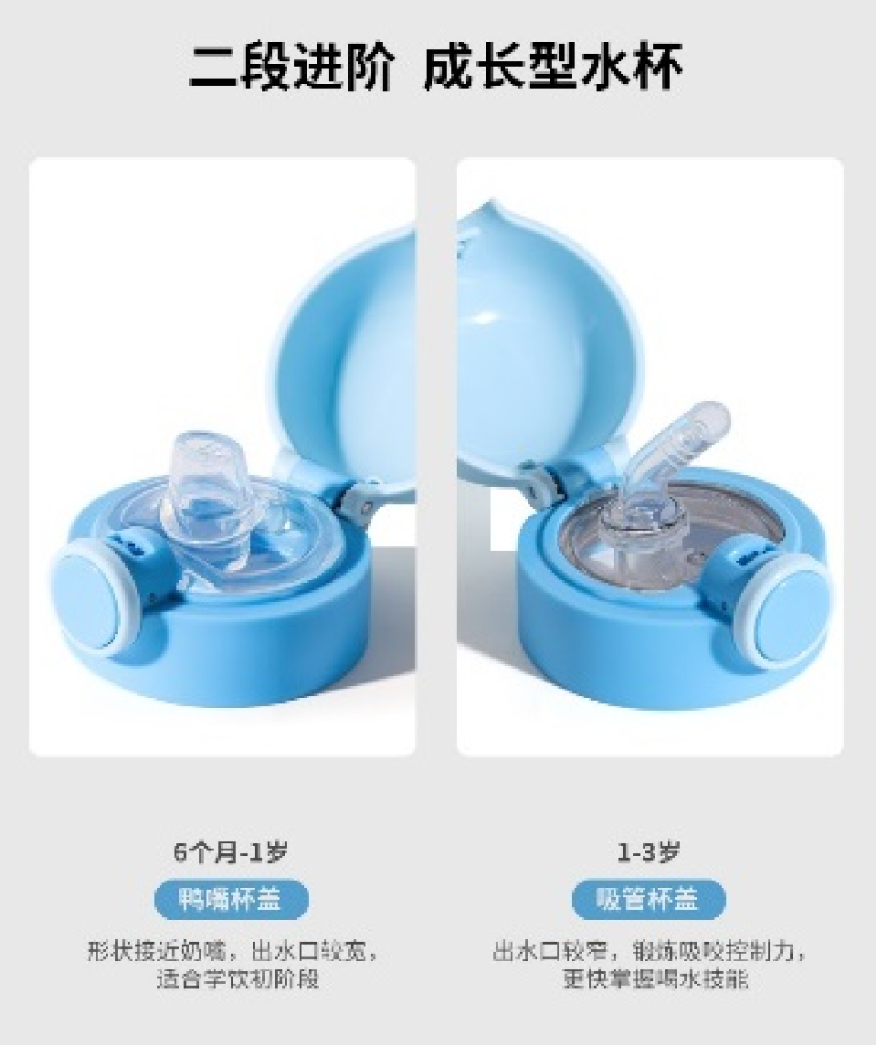 1、杯体优质PPSU材质,耐高温,宝宝饮用更安心; 2、鸭嘴盖+吸管盖,陪伴宝宝从奶瓶奶嘴过渡到吸管水杯;