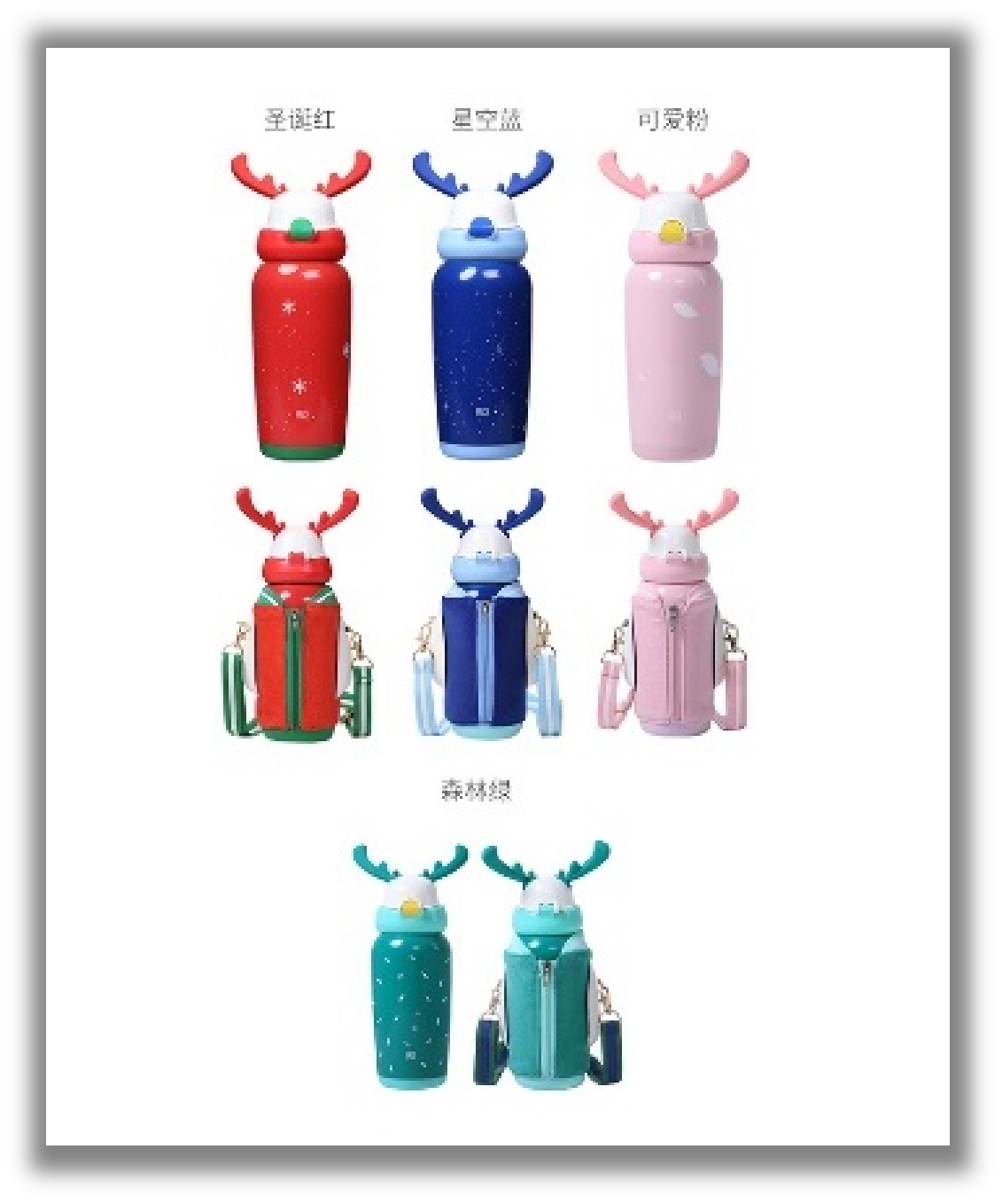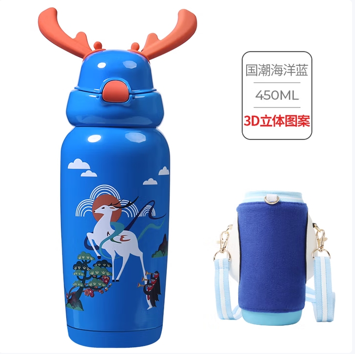 1、原创设计Q弹鹿角,杯身国潮图案,造型时尚; 2、弹扣杯盖,一键轻松开盖;