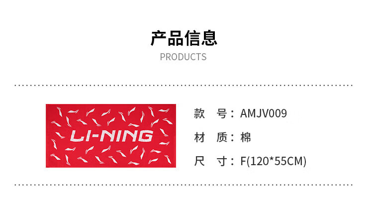 商品名称:李宁 毛巾 AMJV009