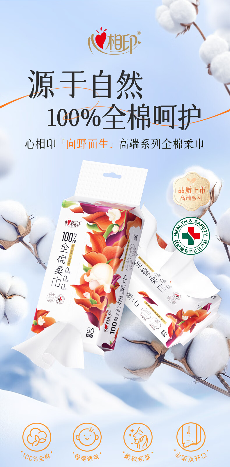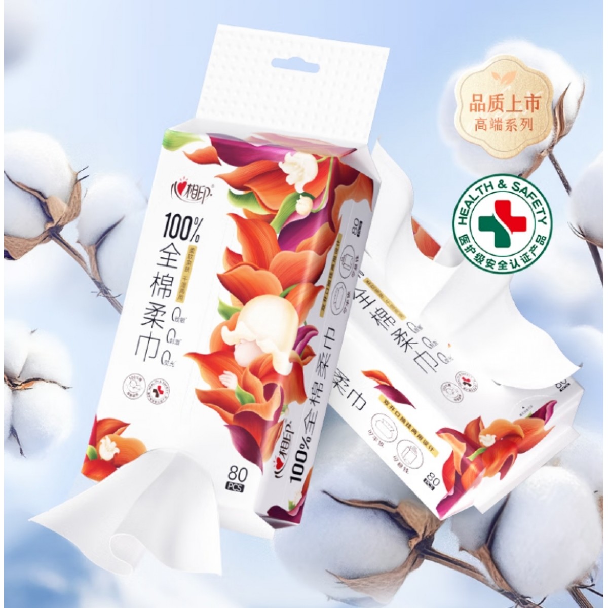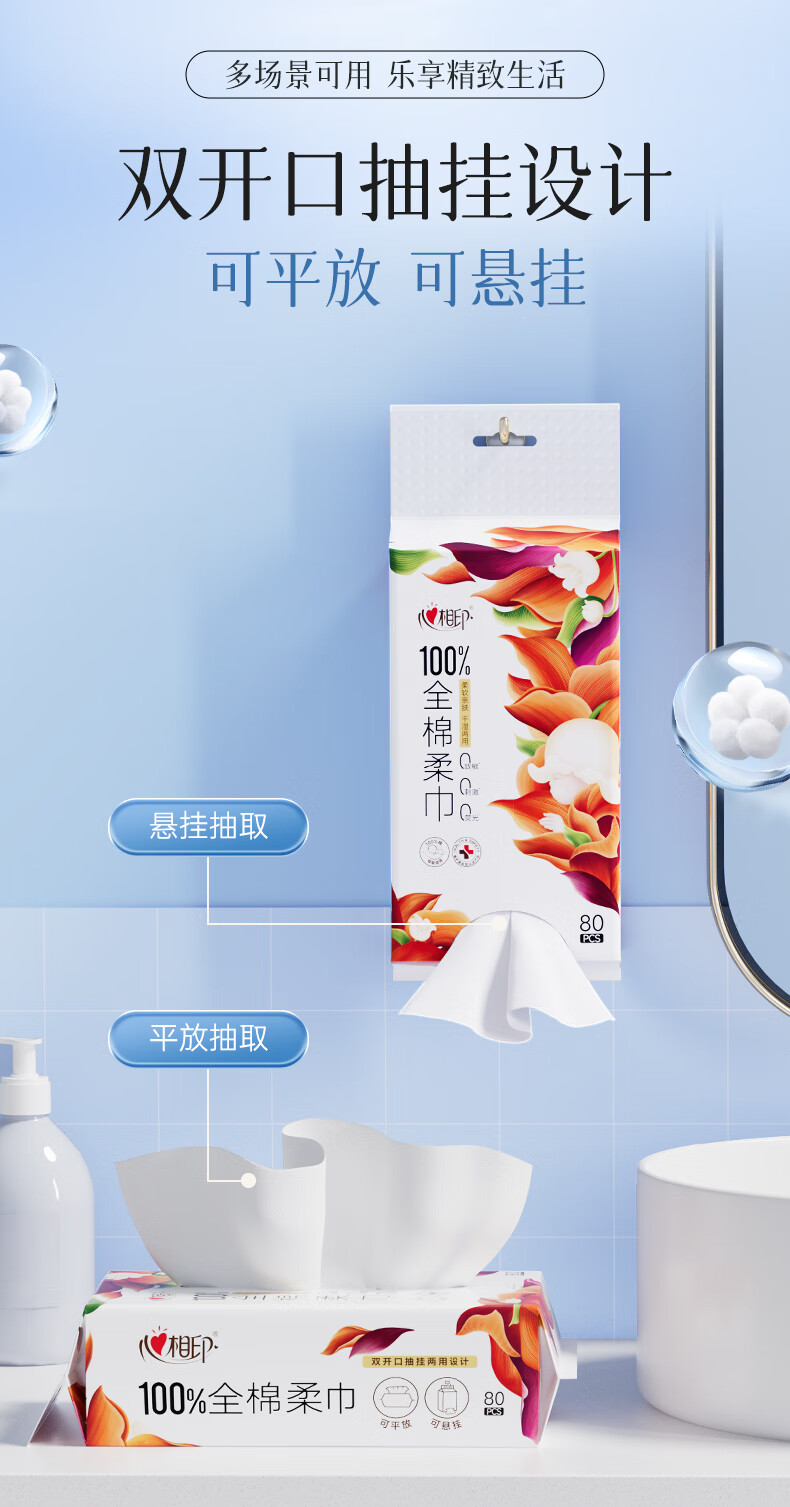 心相印 纯棉系列80片装洗脸巾(双开口随心抽) XCK080(单包)