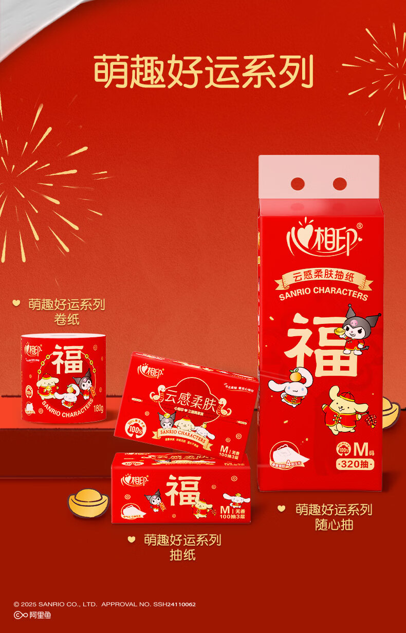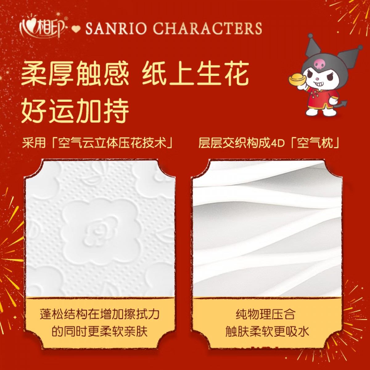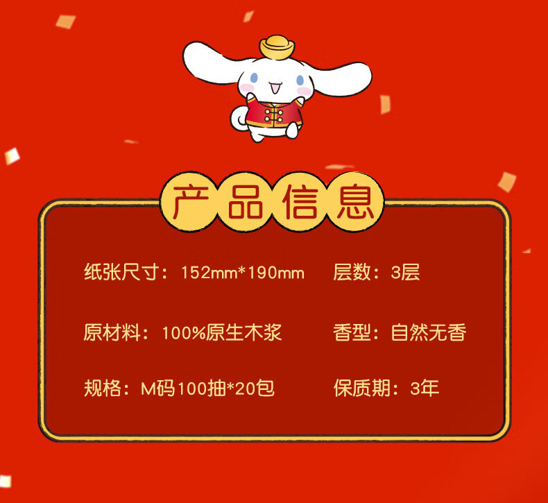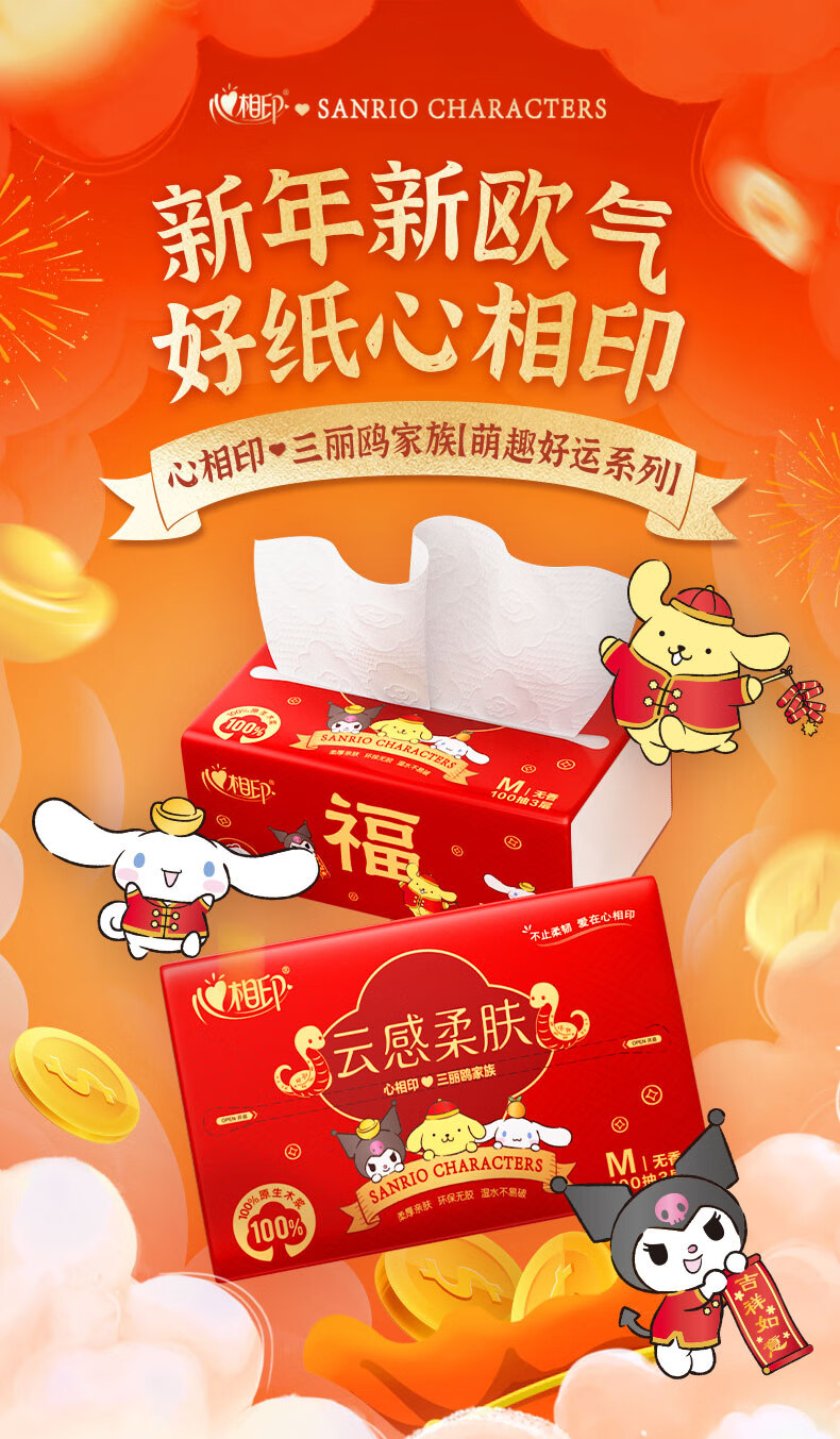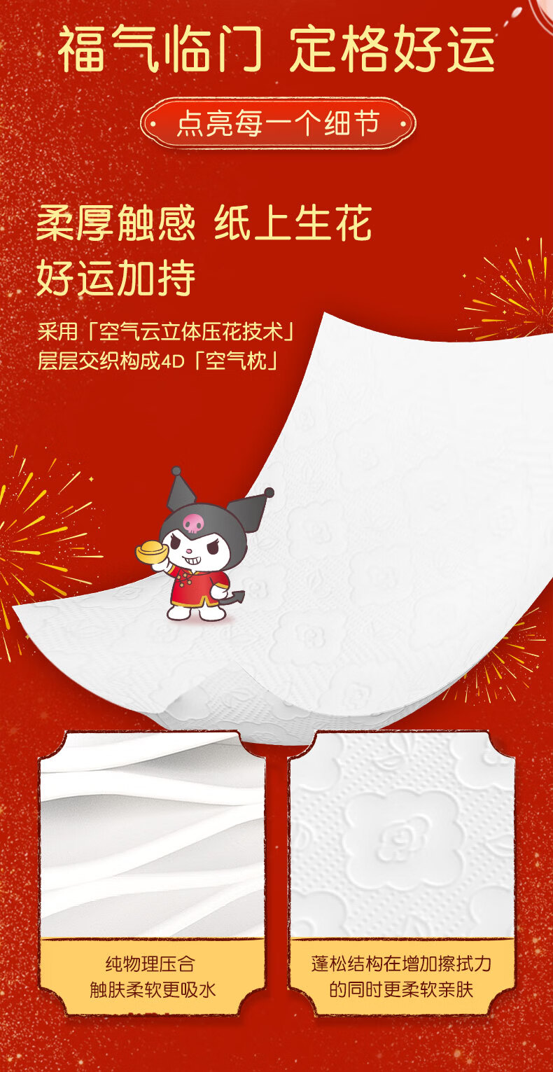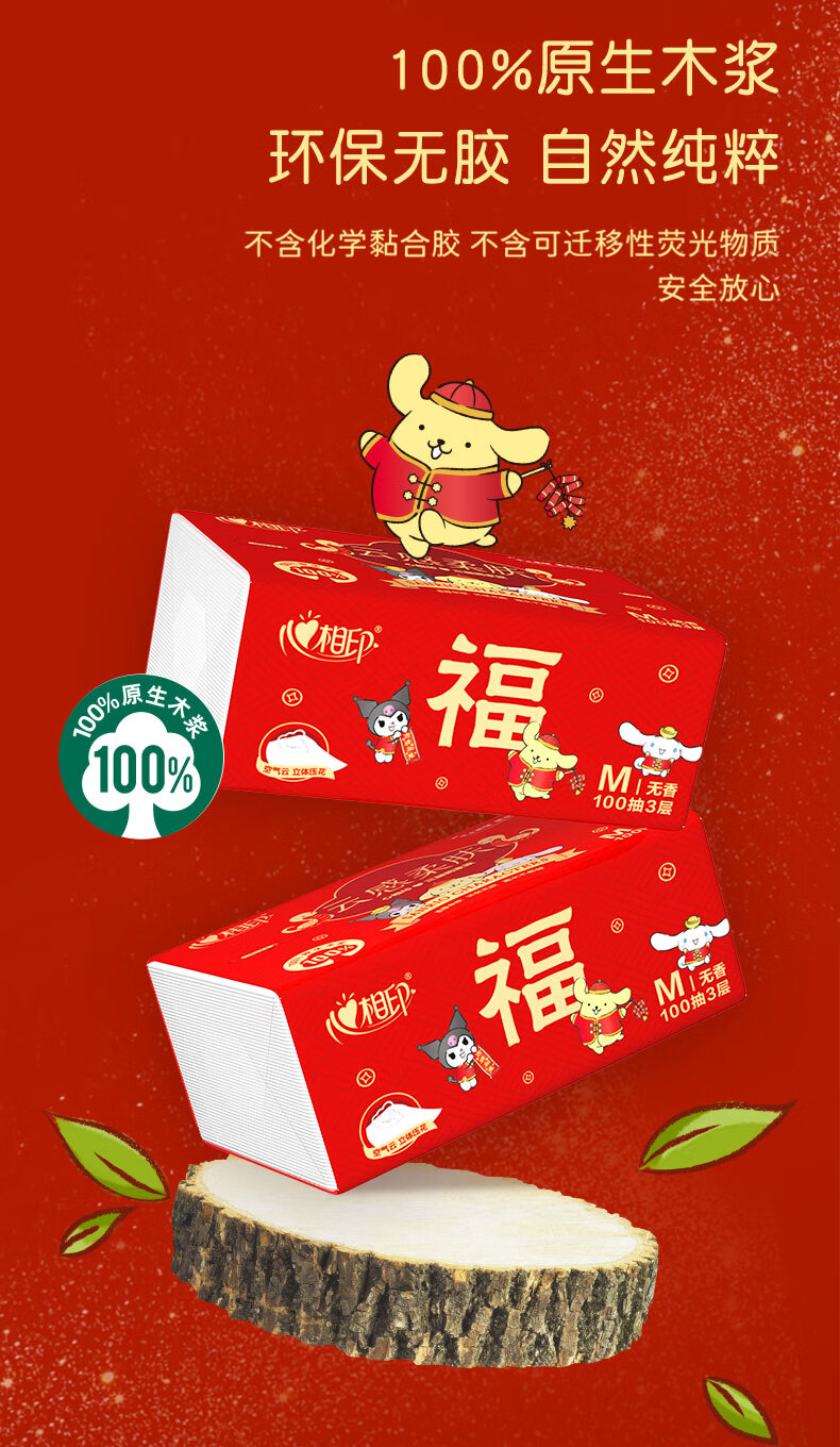 商品名称:心相印 云感100抽20包三层立体压花塑装面巾纸(新春)(M码) DT18100(电商)