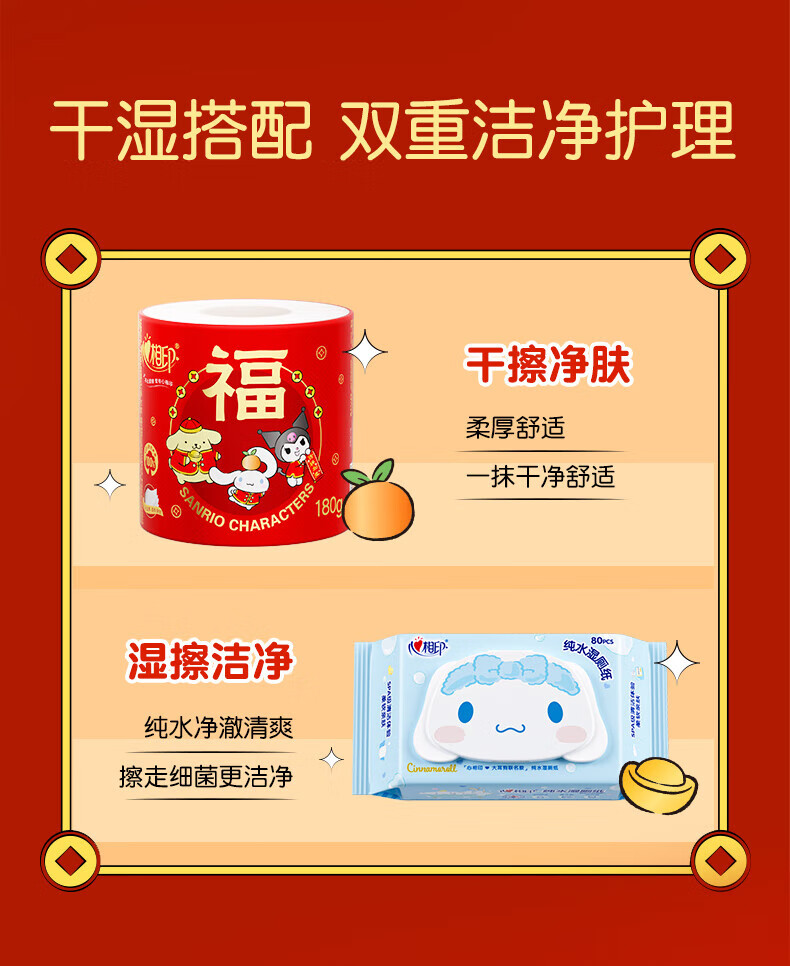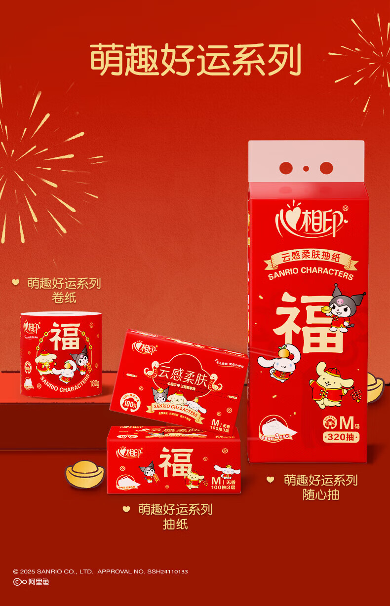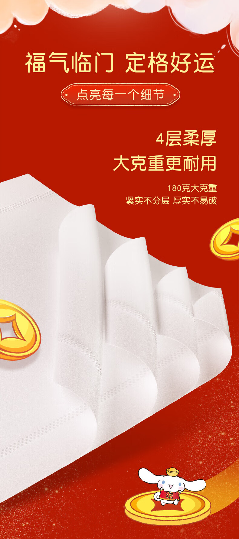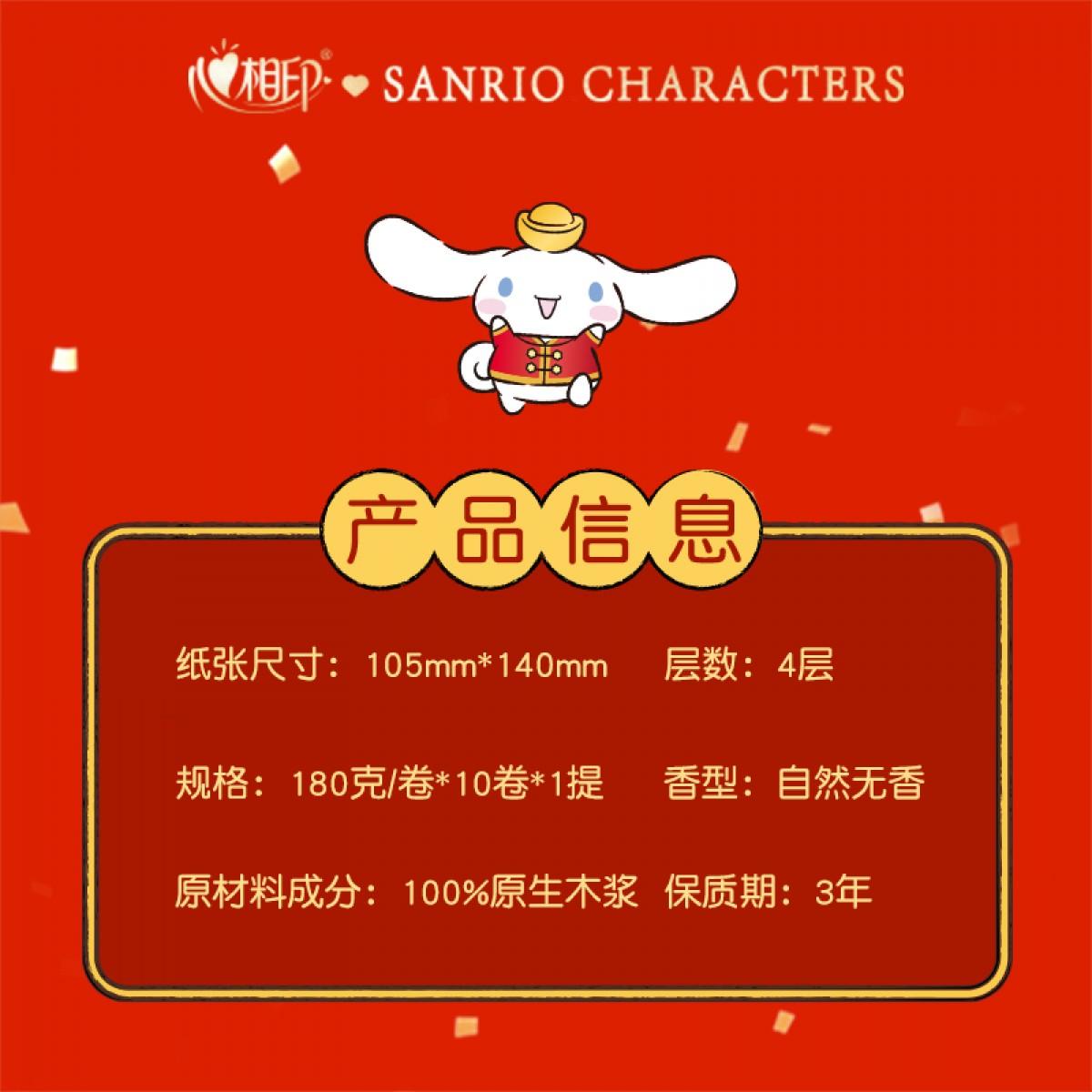 心相印 经典180克10粒装四层卷筒卫生纸(升级版1)(新春) BT2910(单提)