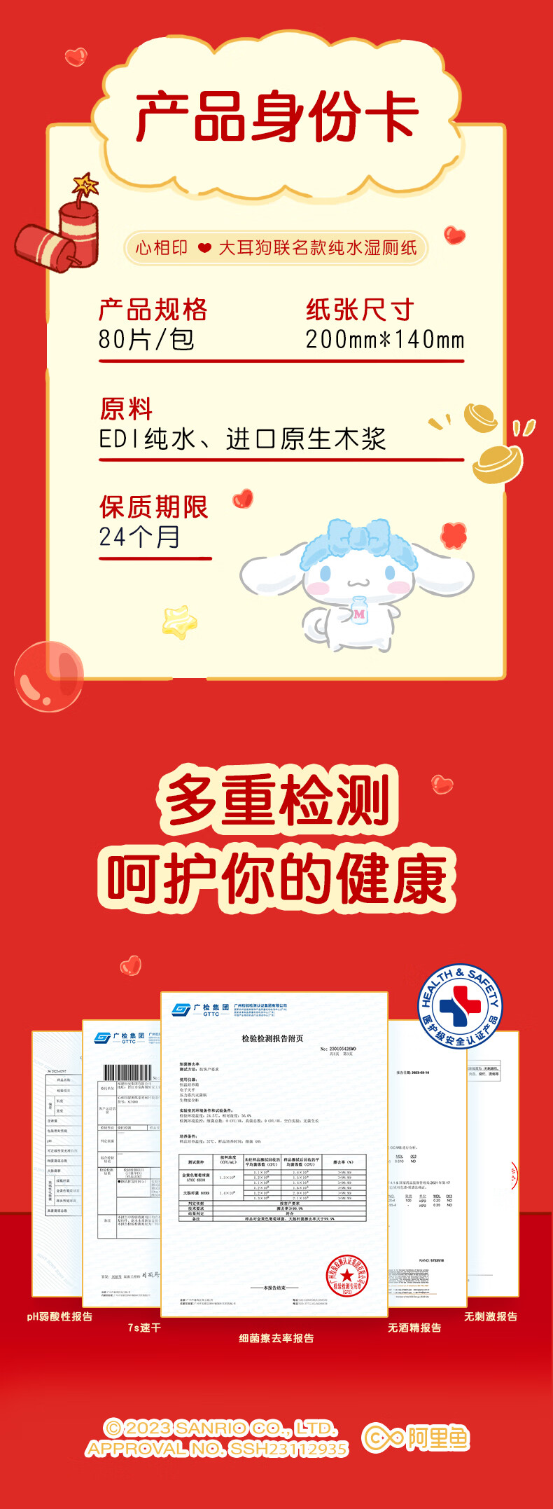 商品名称:心相印 IP款湿厕纸系列80片装湿巾*5包(大耳狗) XCY080(箱装)(新春款)