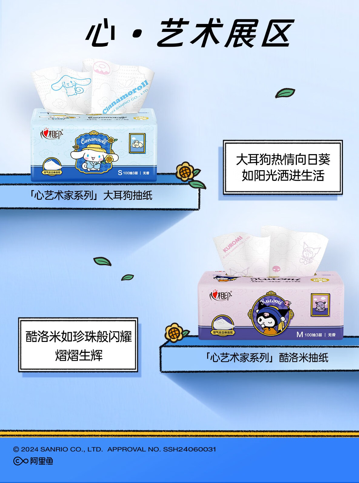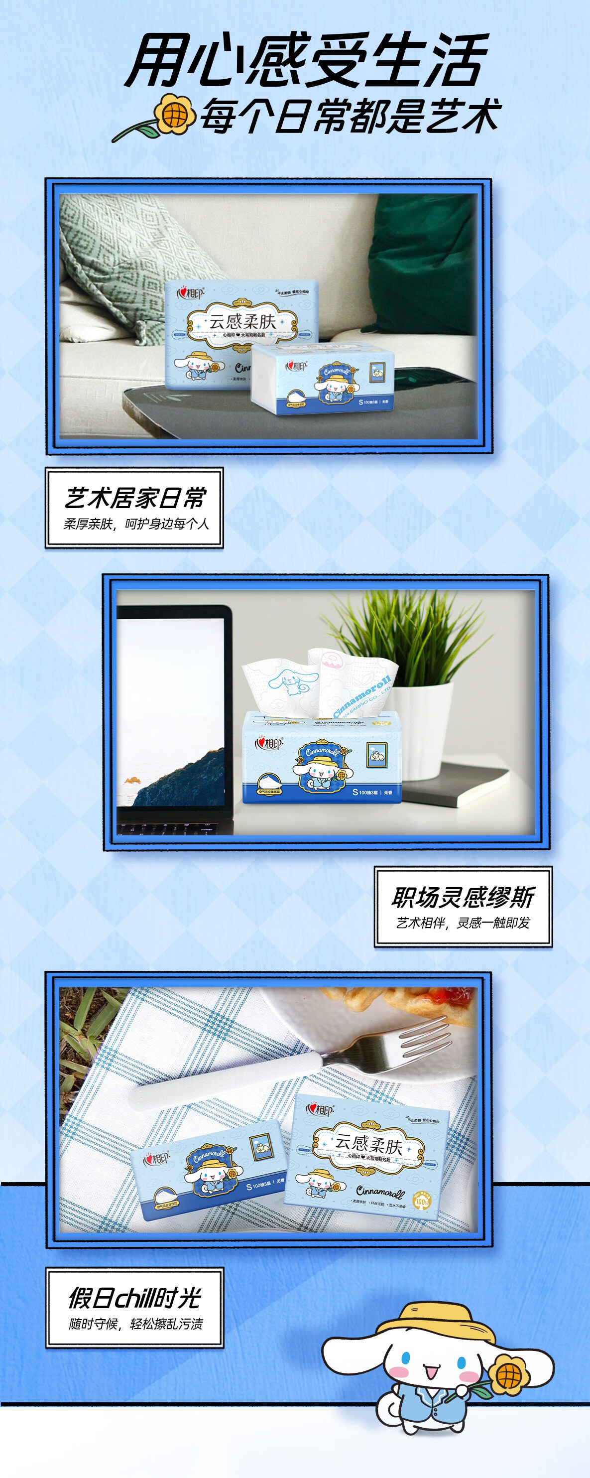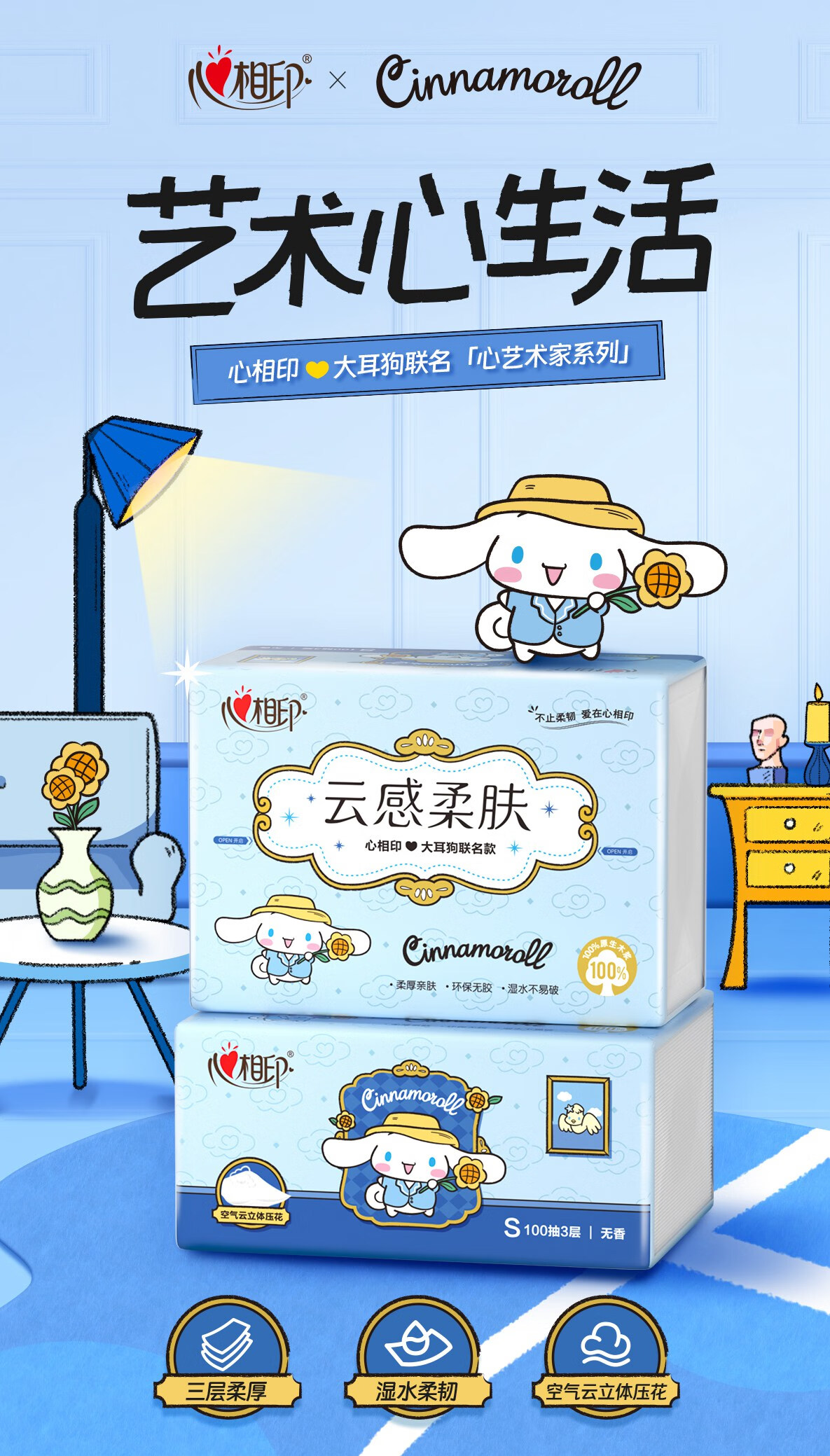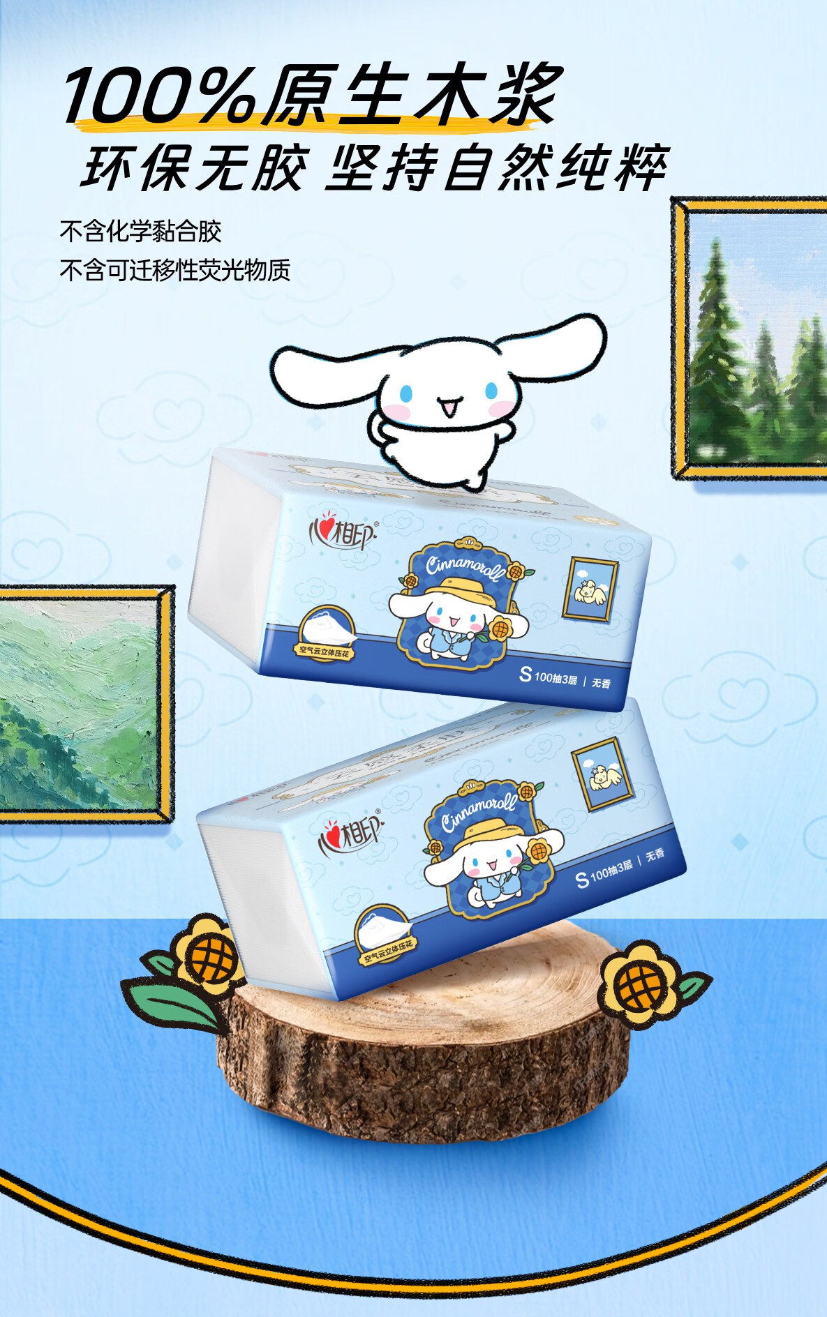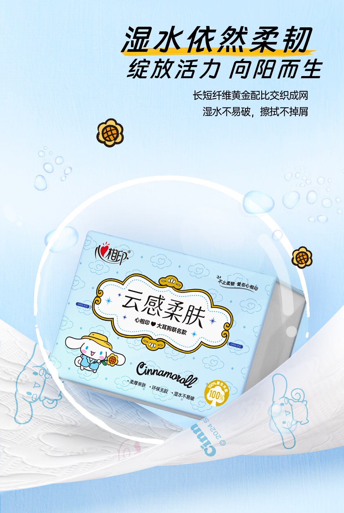 心相印 云感100抽20包三层立体压花塑装面巾纸三丽鸥联名款 DT17100