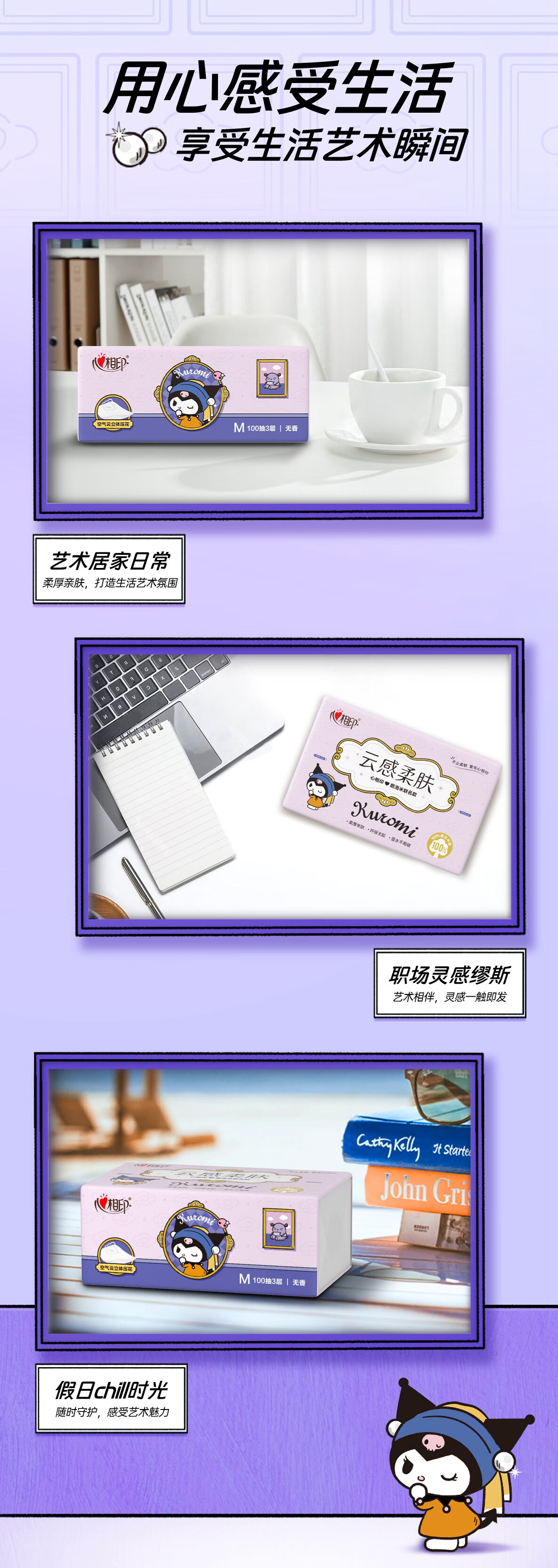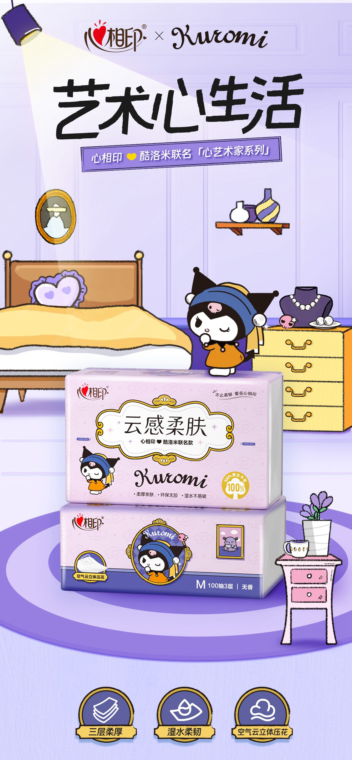 心相印 云感100抽20包三层立体压花塑装面巾纸三丽鸥联名款(M码) DT18100(箱装)