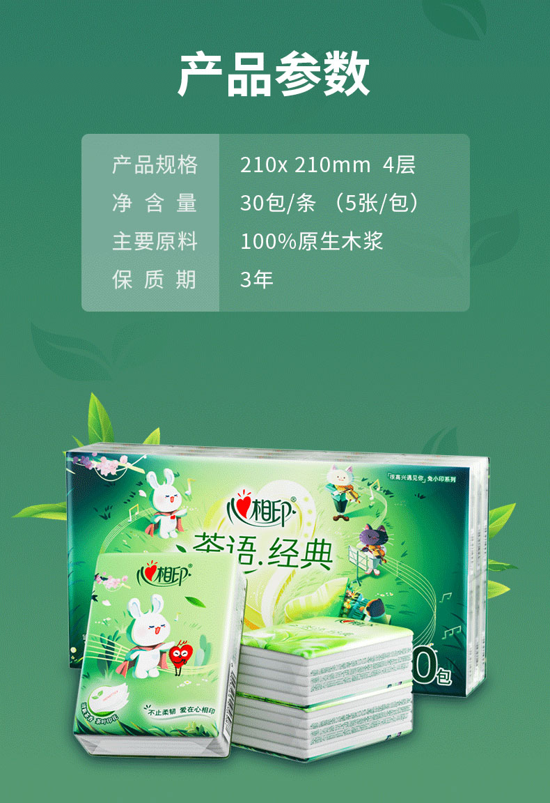 商品名称:心相印 茶语经典30包装四层印花手帕纸*1条 CY1730(单条)