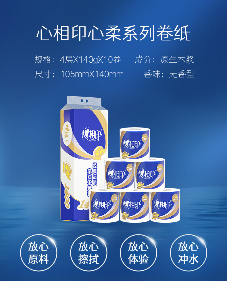 商品名称:心相印 140克10粒装四层卷筒卫生纸*1提(若发生缺货替换成卷装发货) BT910(提装)
