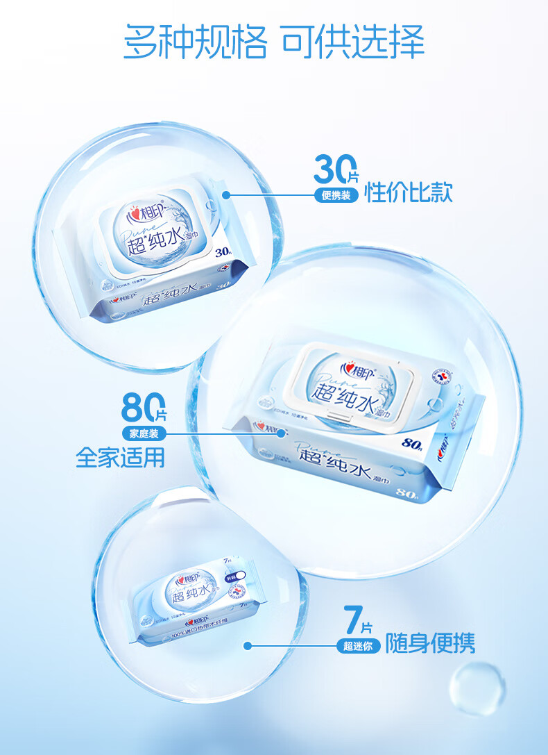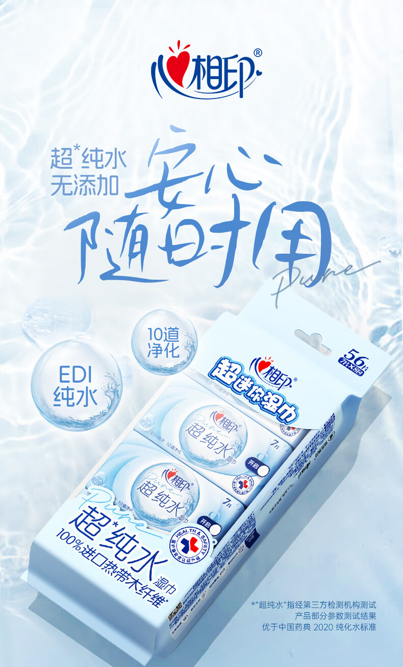 商品名称:心相印 成人超纯水系列7片装湿巾8包组合装 XCC007+P1(单提)