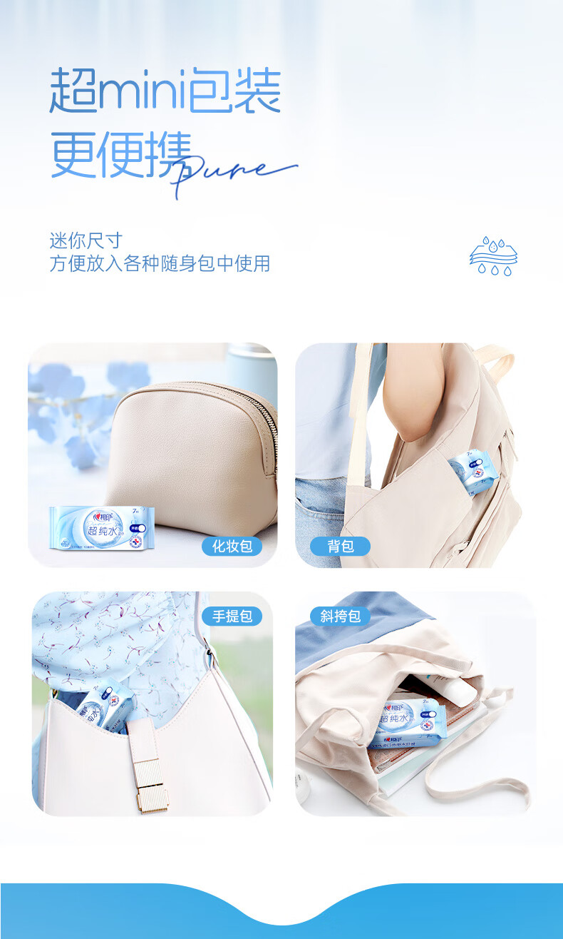 心相印 成人超纯水系列7片装湿巾8包组合装 XCC007+P1(单提)