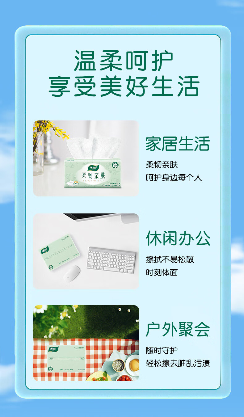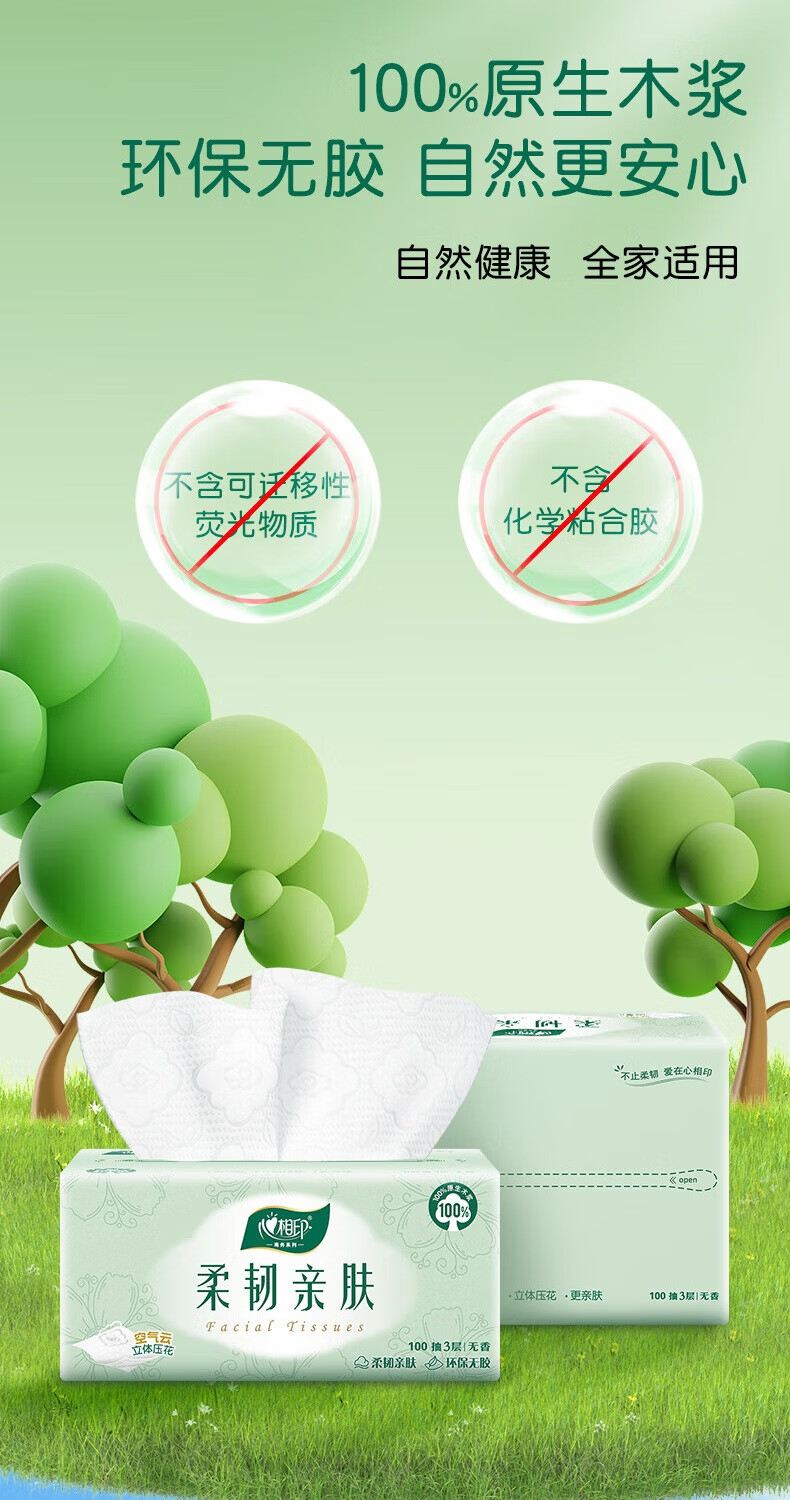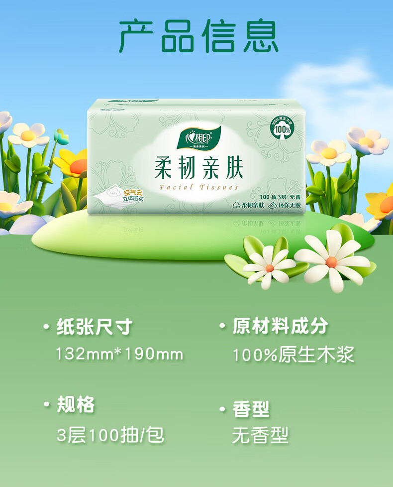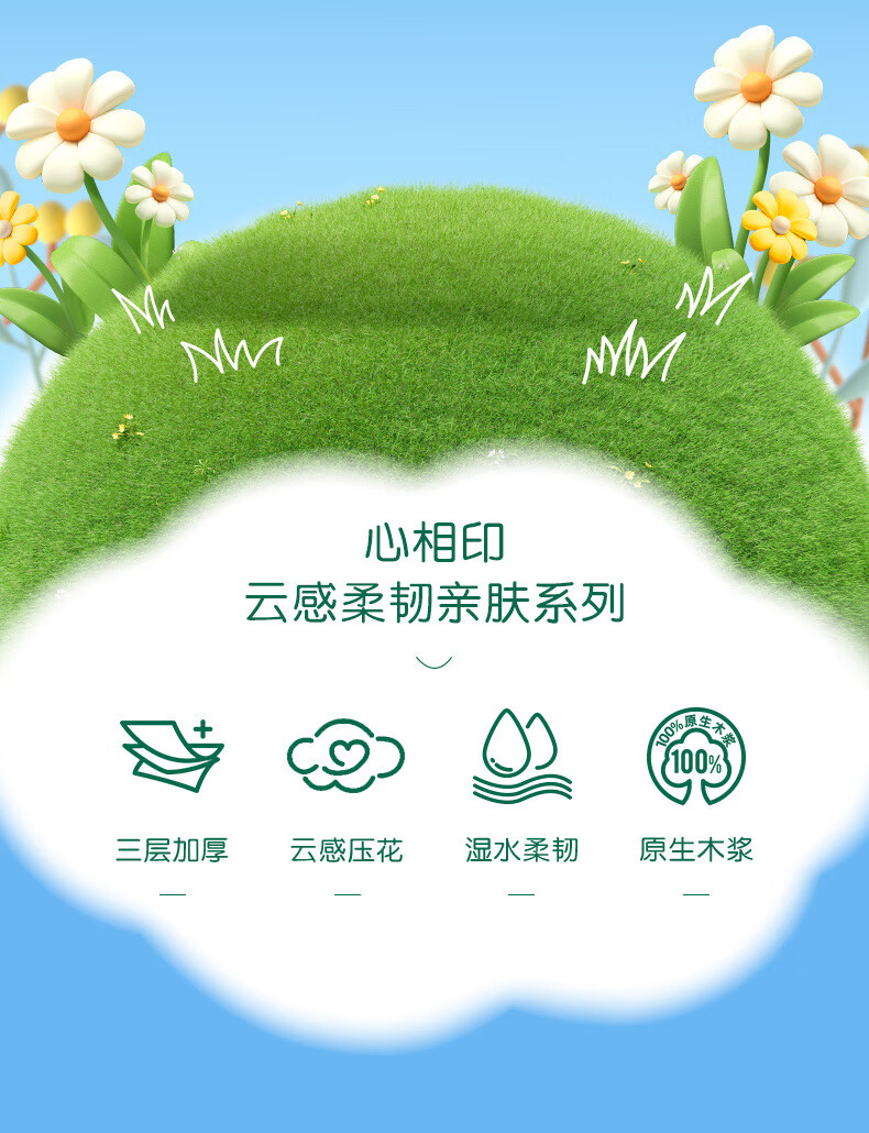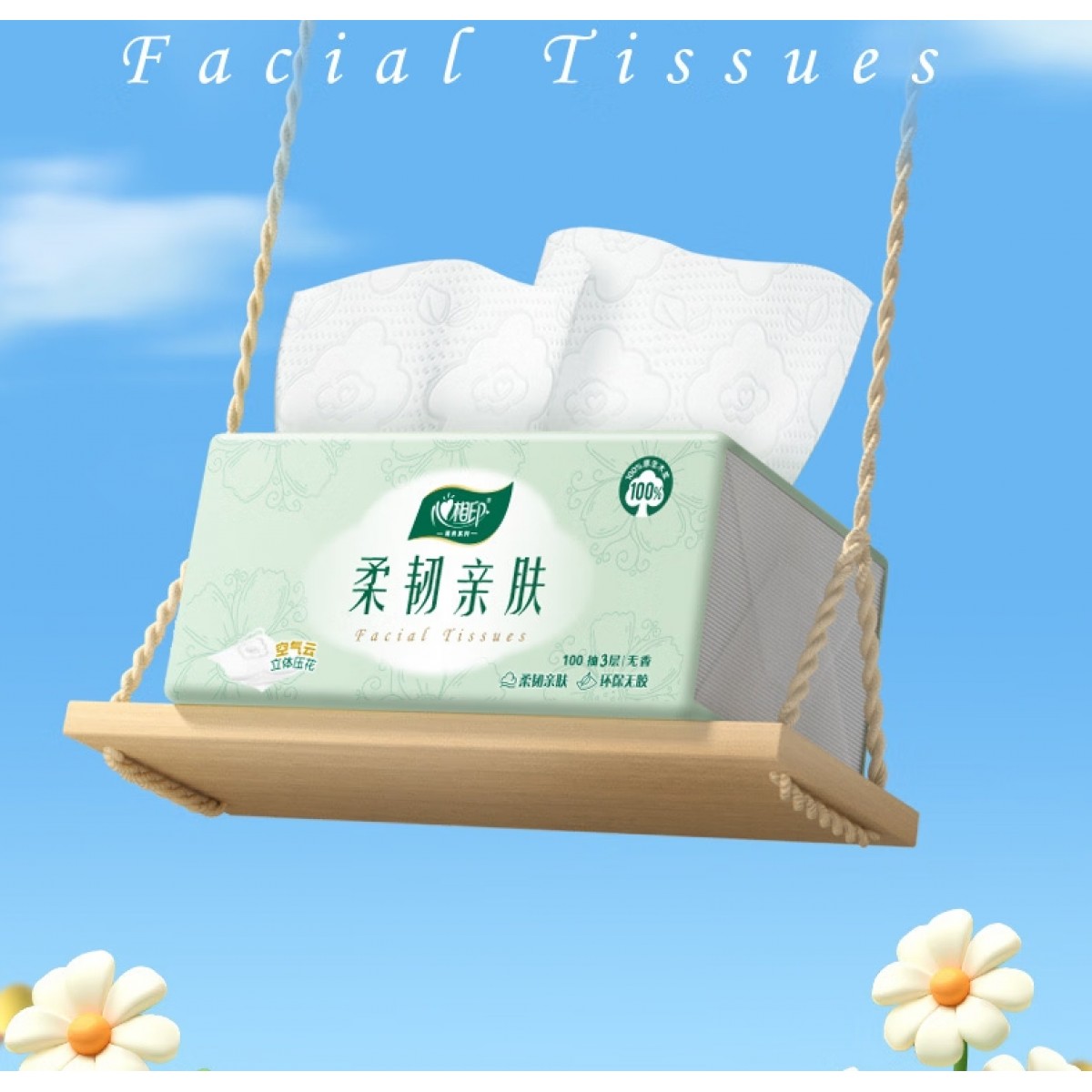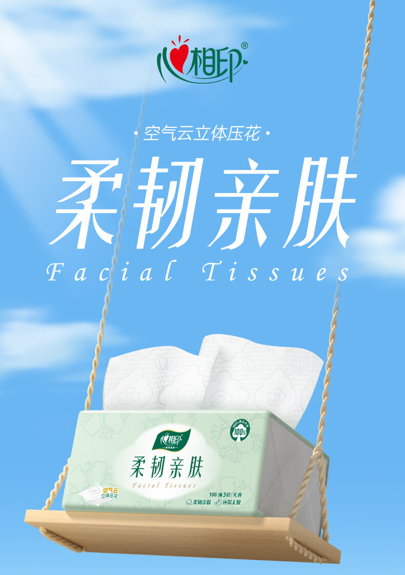 心相印 云感柔韧亲肤三层100抽18包塑装抽纸(6包*3提)DT100(箱装)