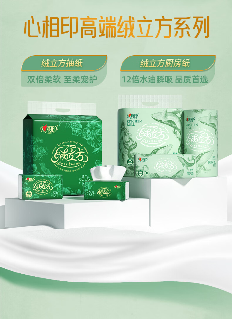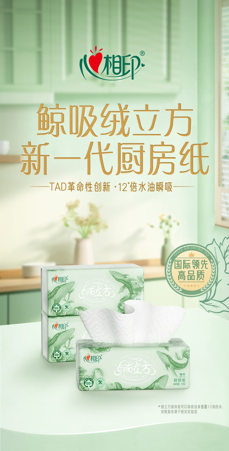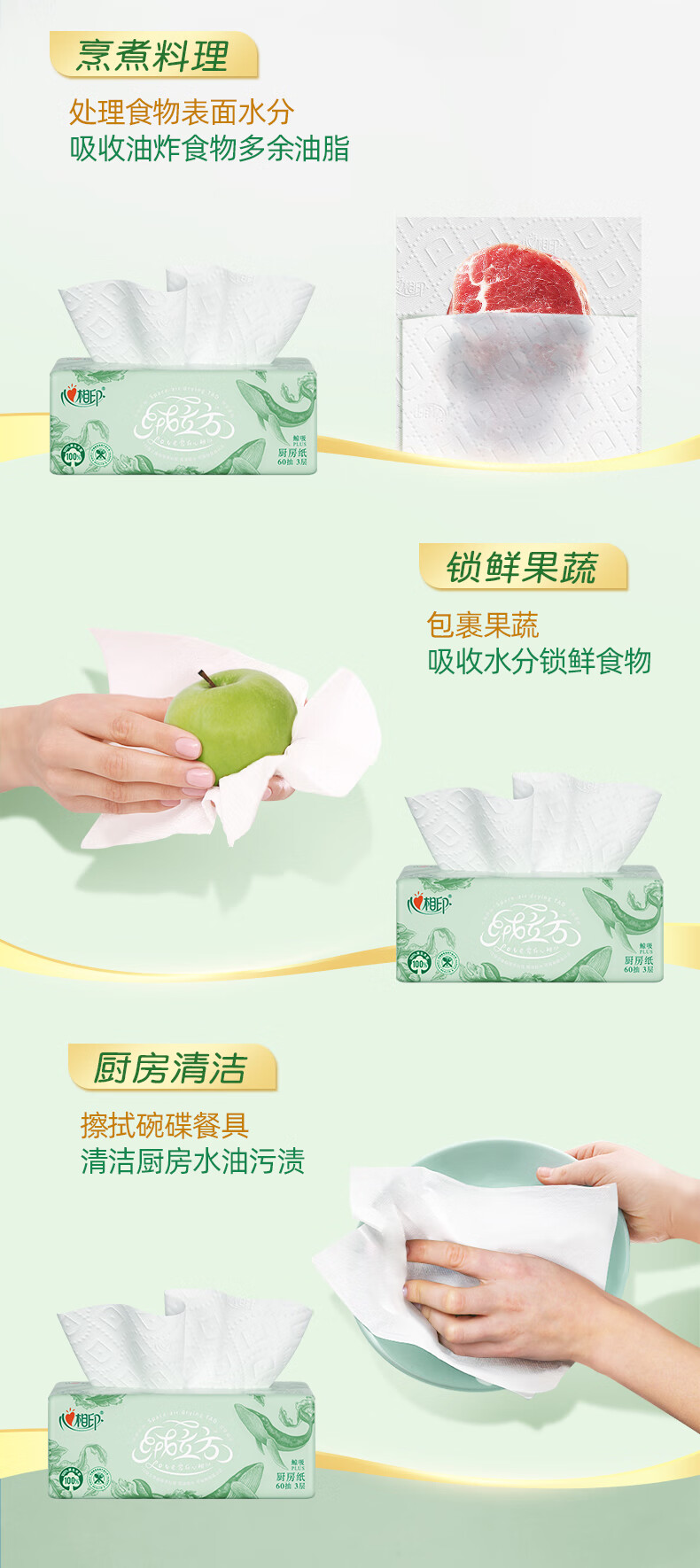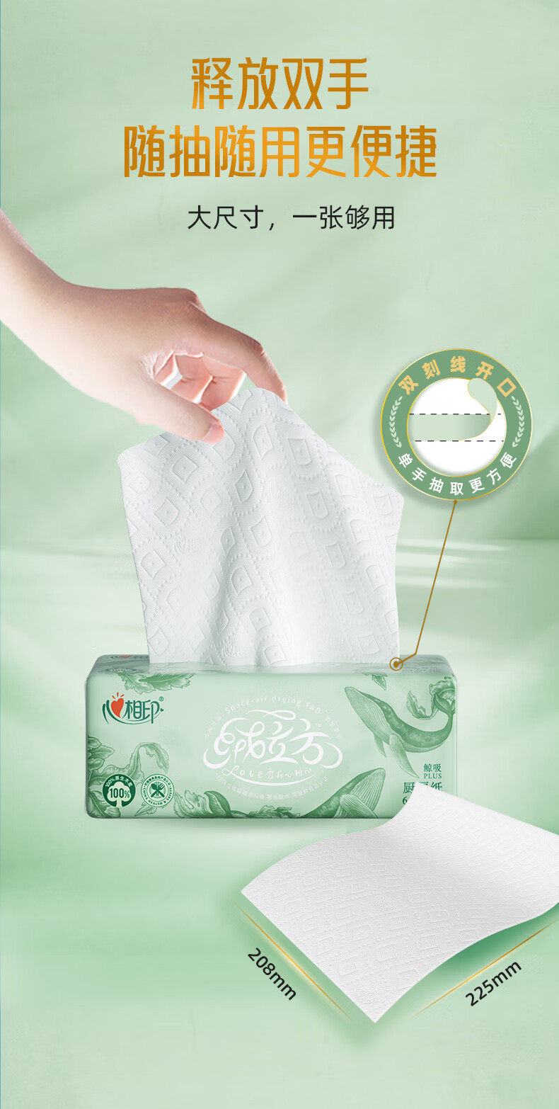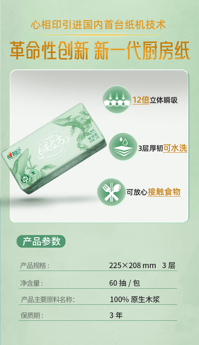 商品名称:心相印 绒立方60抽9包塑装厨房纸巾 TKDT1060(电商箱装)