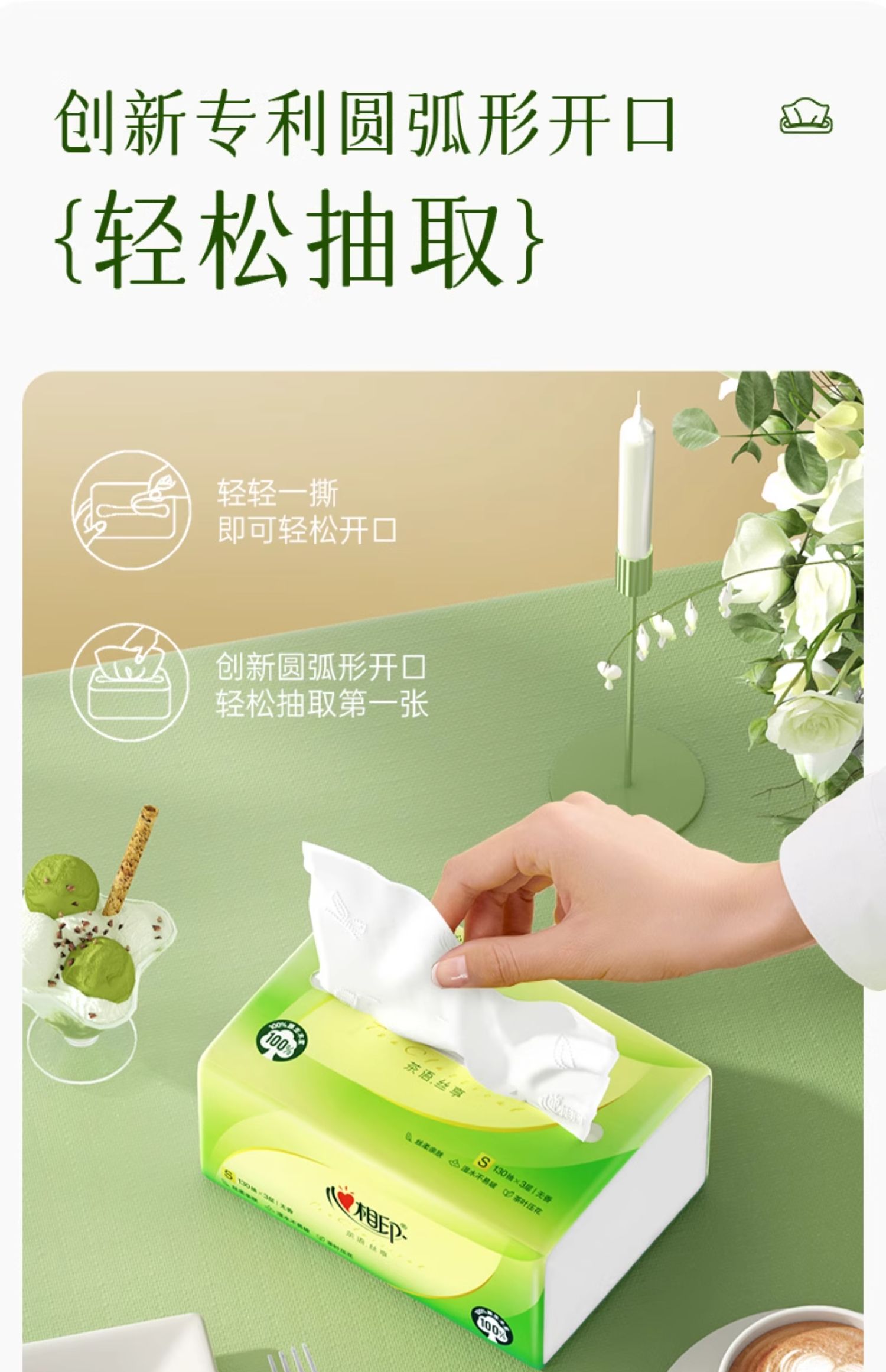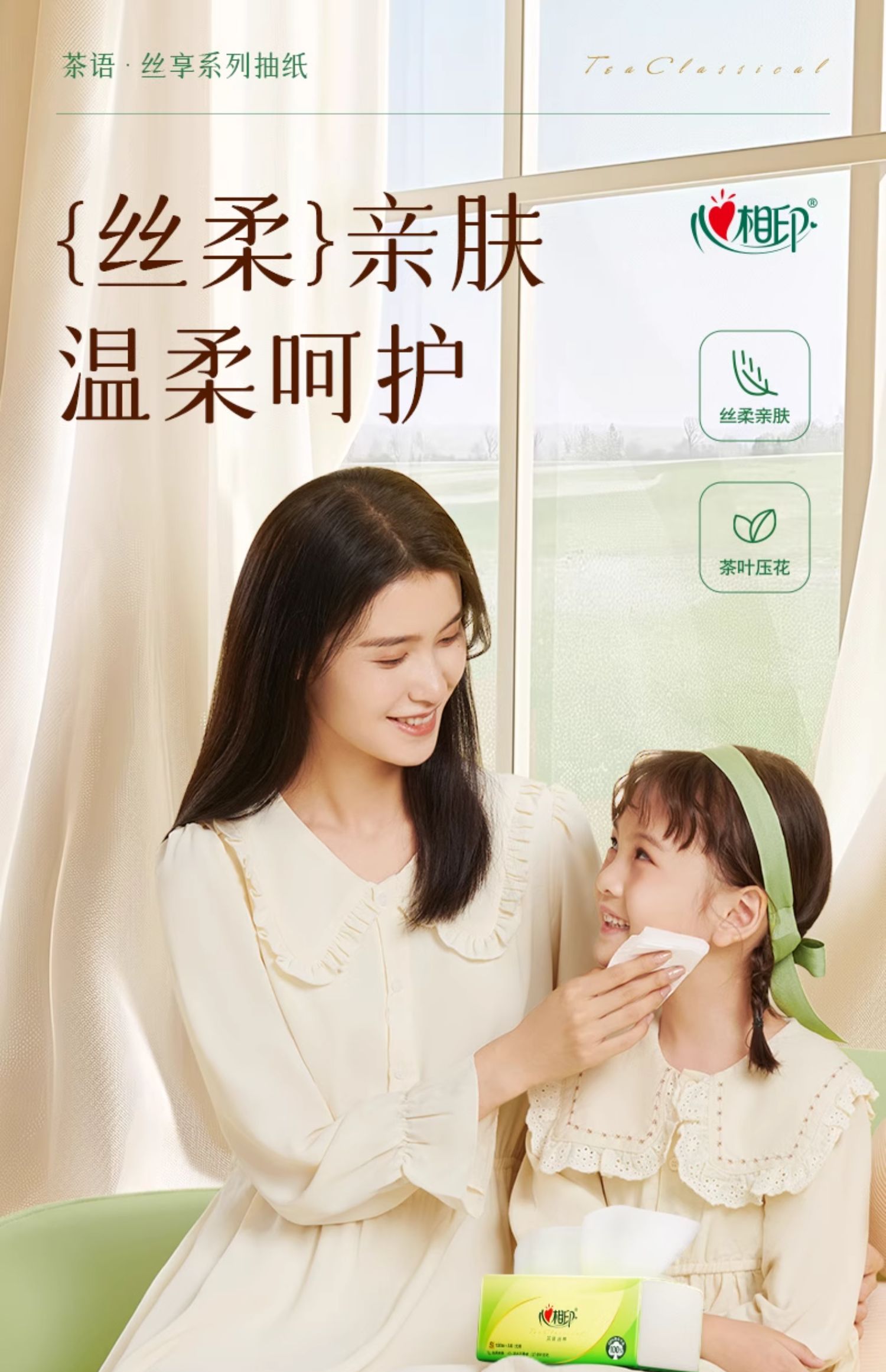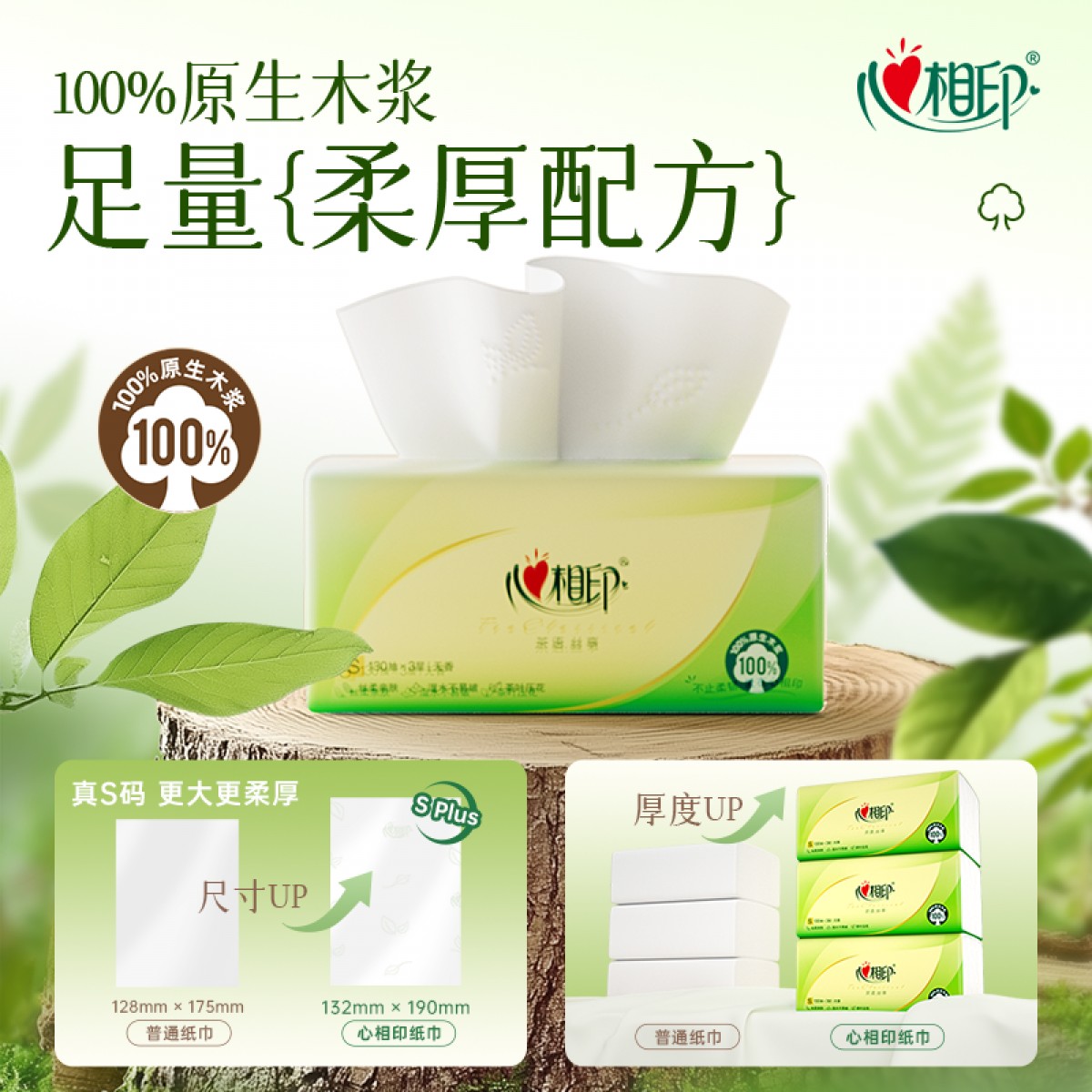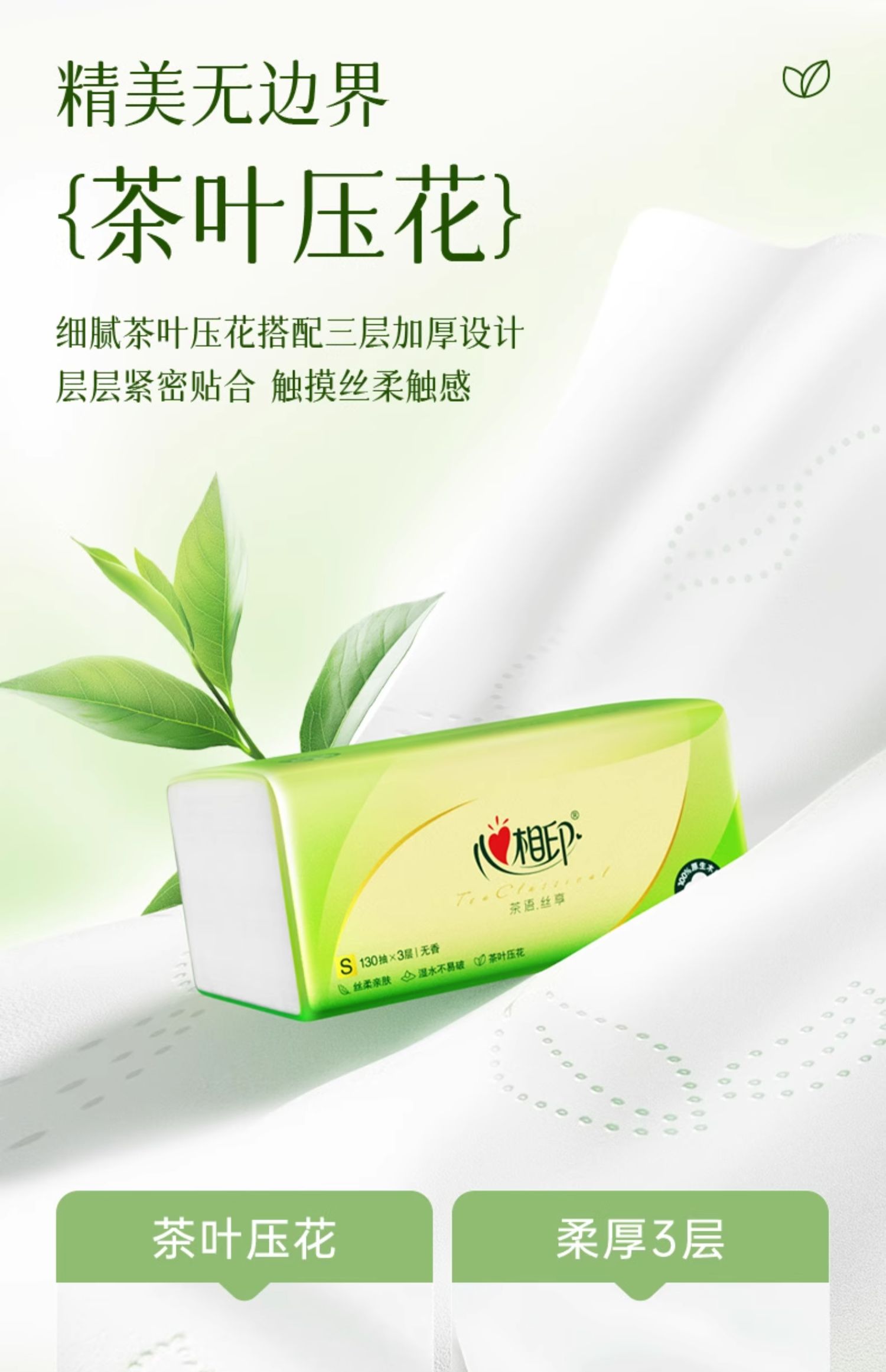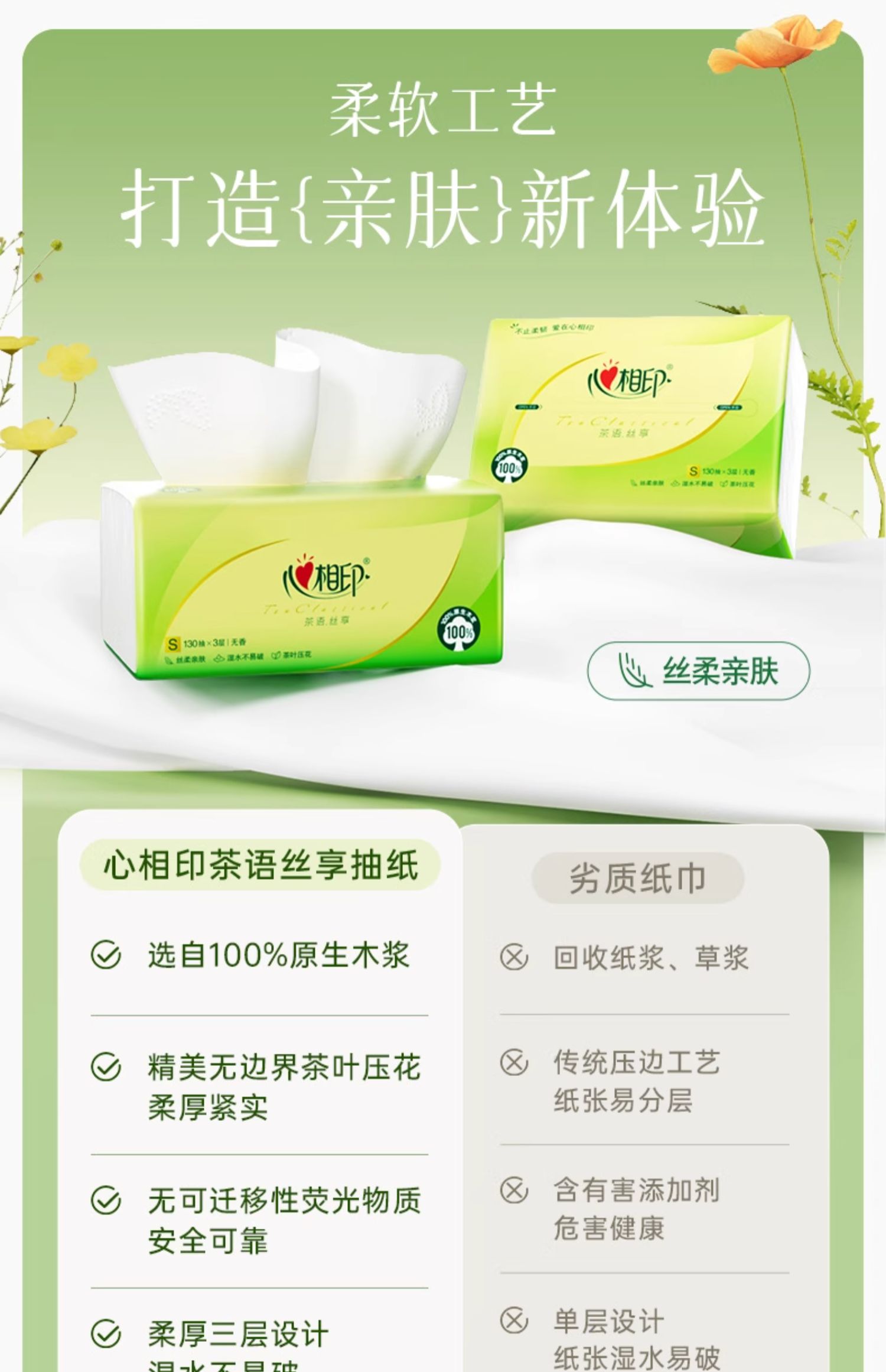 心相印 茶语丝享系列130抽三层塑装纸面巾24包装 DT15130(箱装)