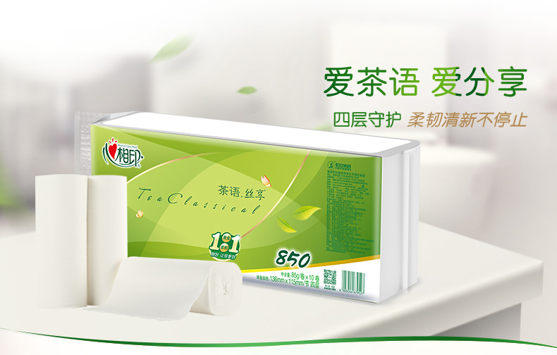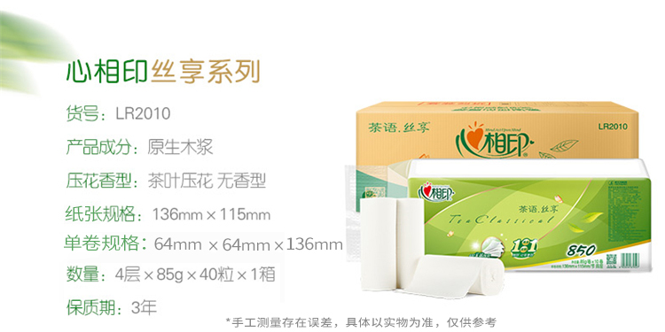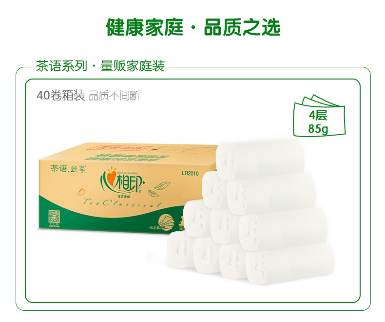商品名称:心相印 茶语丝享系列85克10卷4提装四层无芯卫生纸 LR2010(箱装)