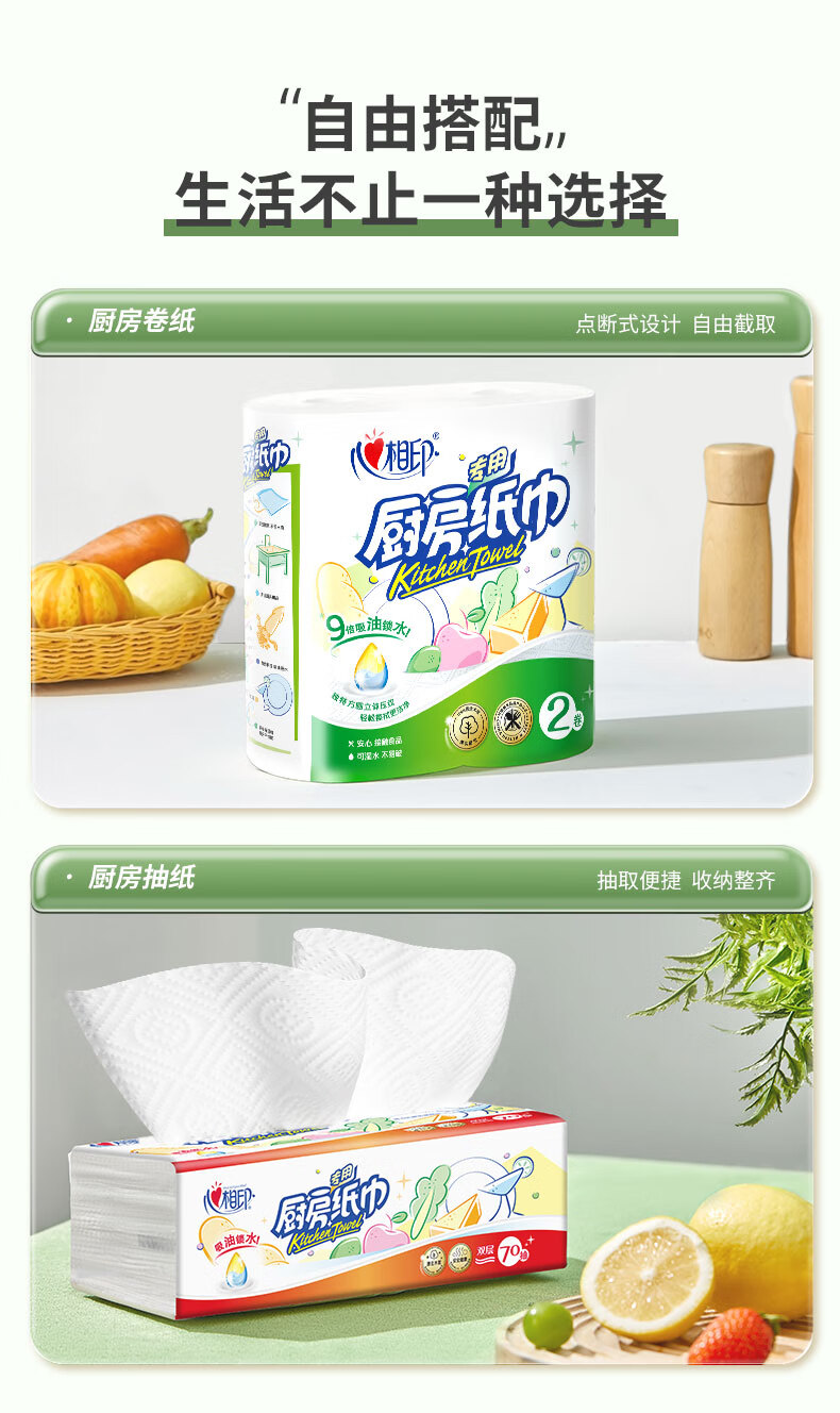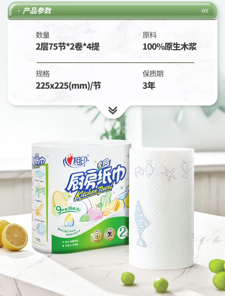 商品名称:心相印 厨房纸巾75节*8卷 KT102(箱装)