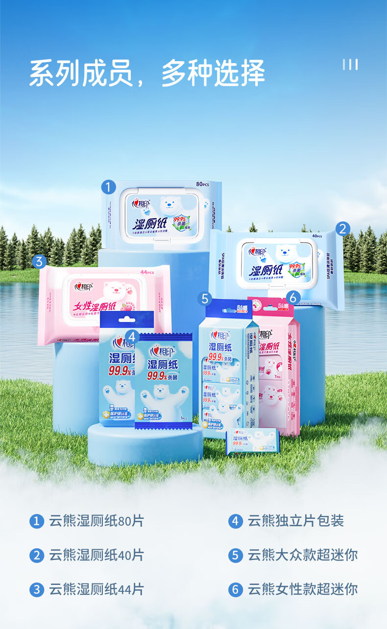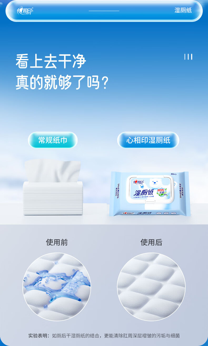 商品名称:心相印 湿厕纸系列湿巾5包套装 5XCY040(包装)