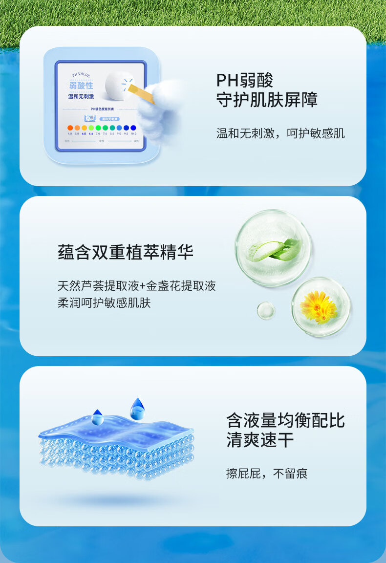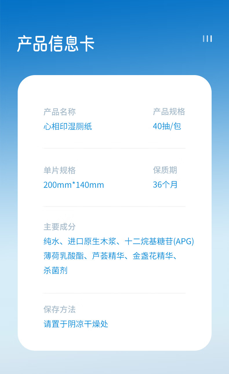 原料成分 :纯水、进口原生木浆、十二烷基糖苷(APG) 薄荷乳酸酯、芦荟精华、金盏花精华、 杀菌剂