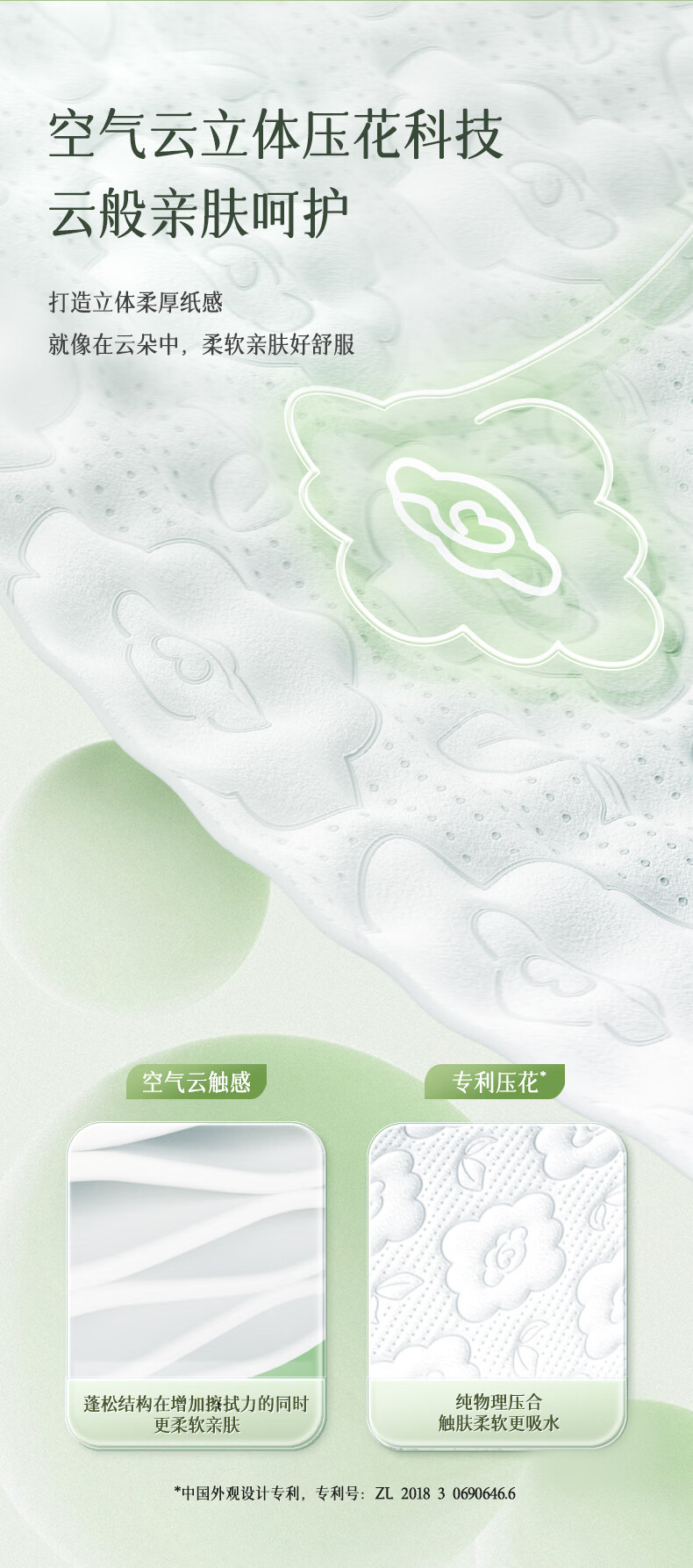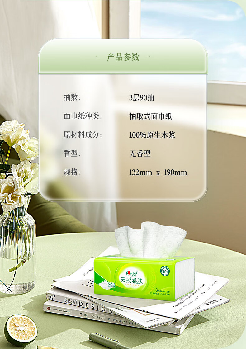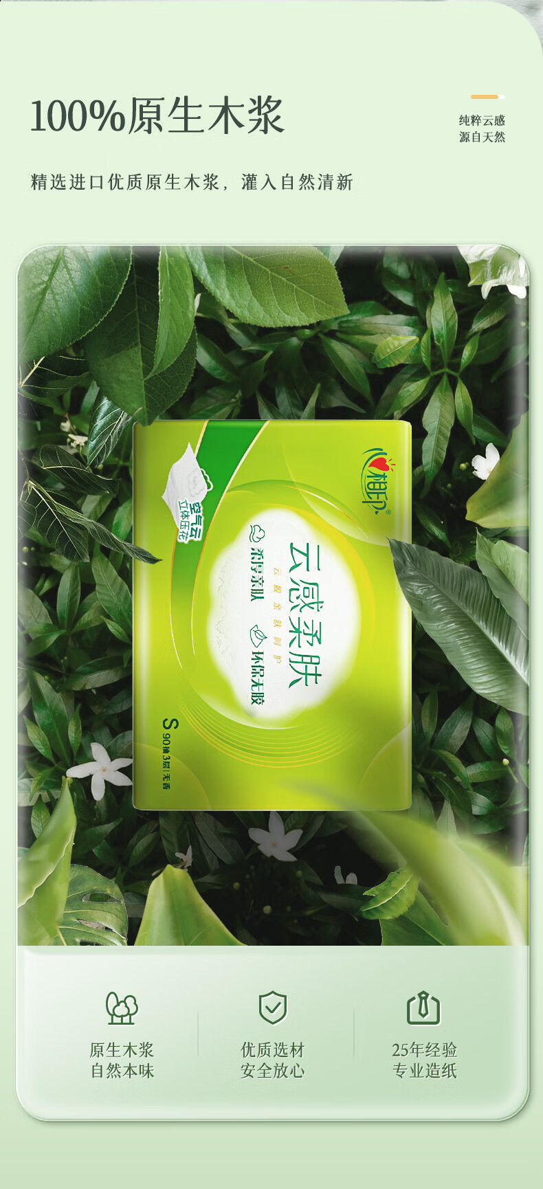 商品名称:心相印 云感系列90抽18包三层立体压花塑装纸面巾箱装 DT17090(箱装)