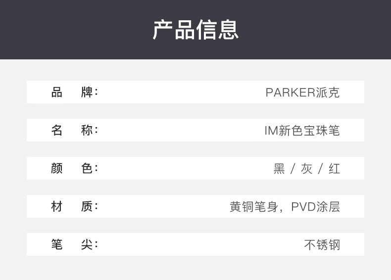 商品名称:派克(PARKER) IM内敛灰黑夹宝珠笔