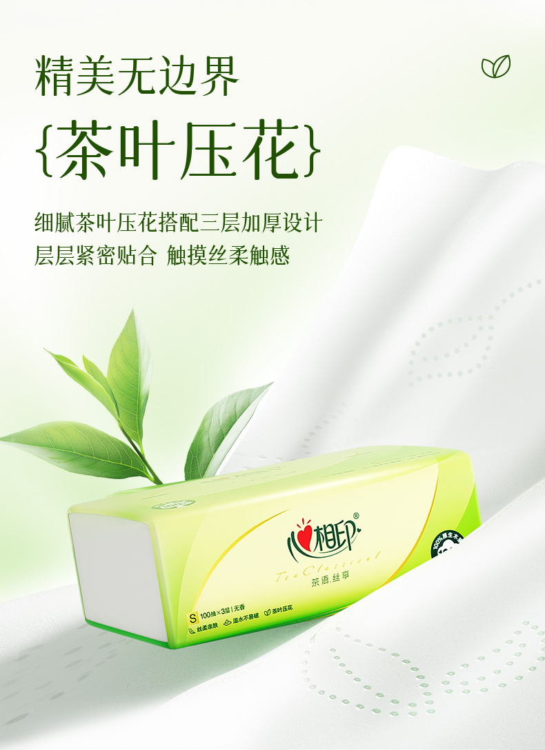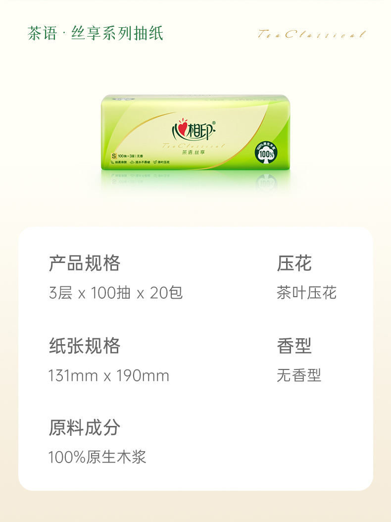 心相印 茶语丝享100抽*20包三层塑装纸面巾 DT15100(箱装)