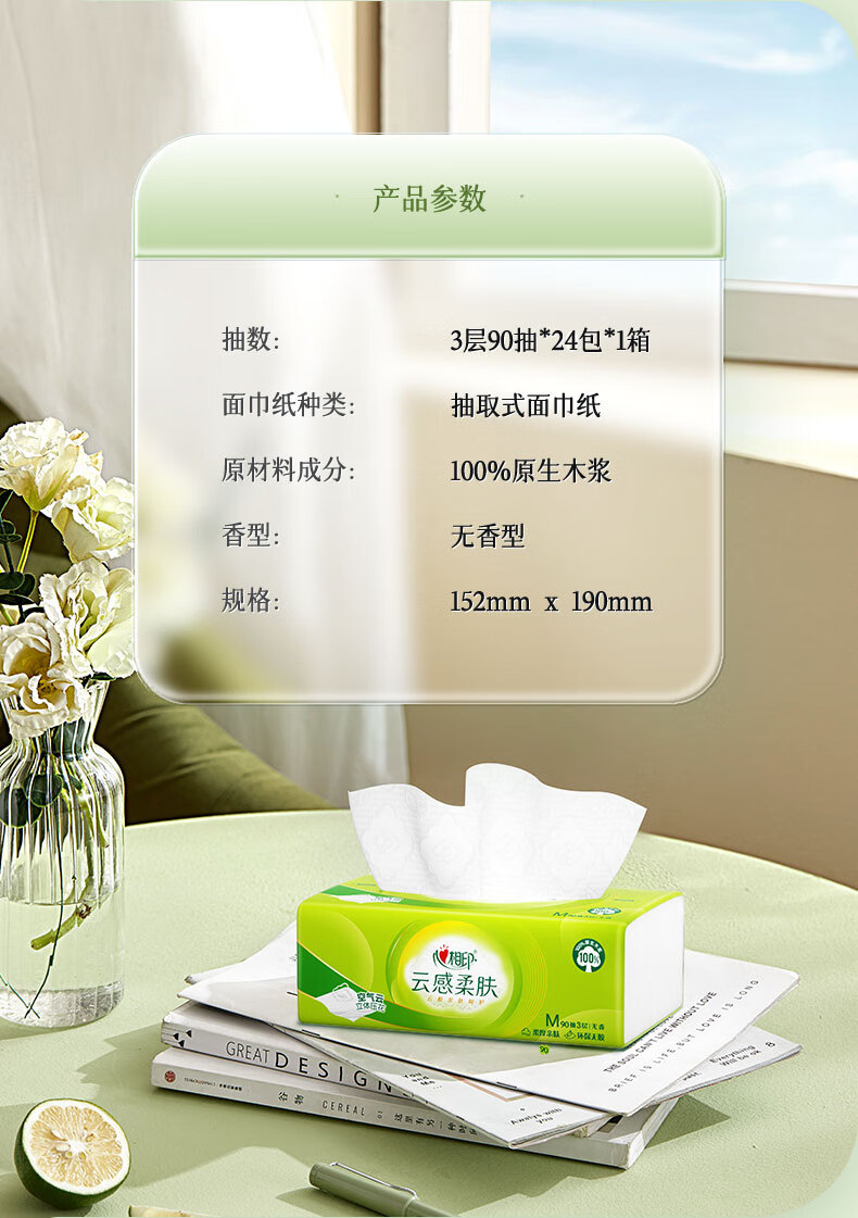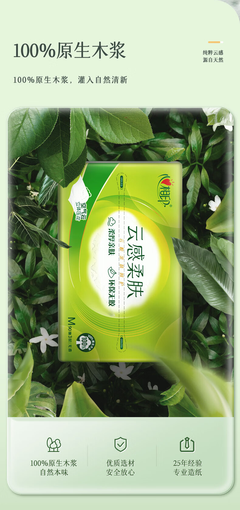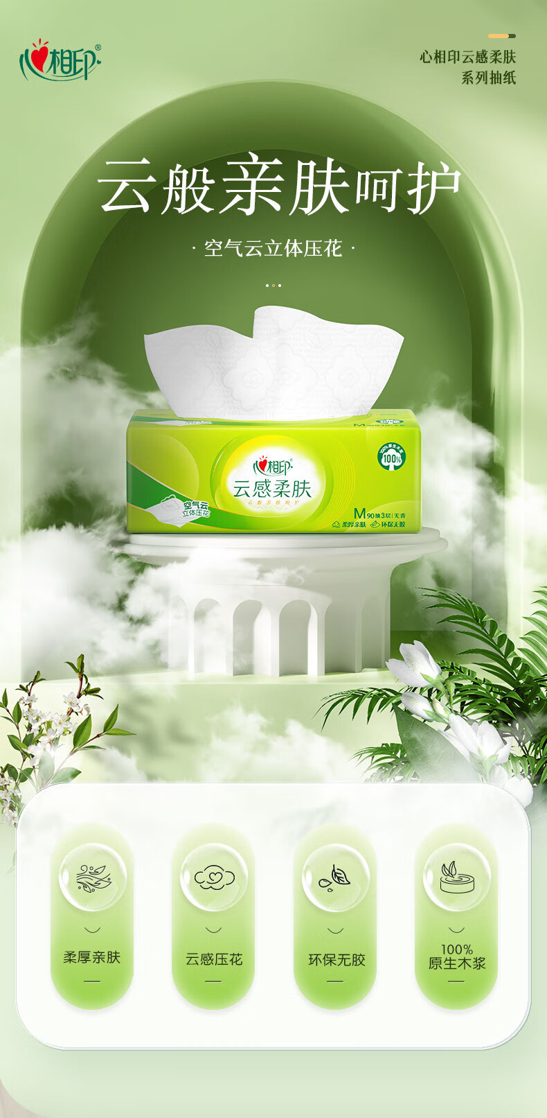心相印 茶语精选90抽20包三层塑装面巾纸(M码) DT9090(电商箱装)