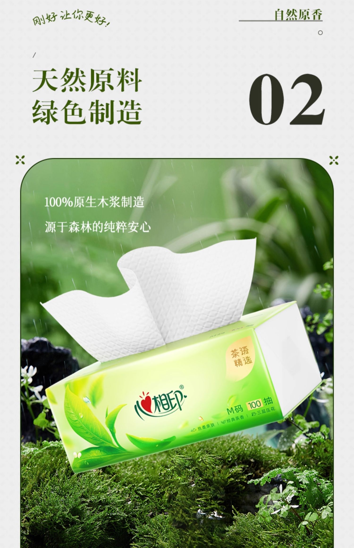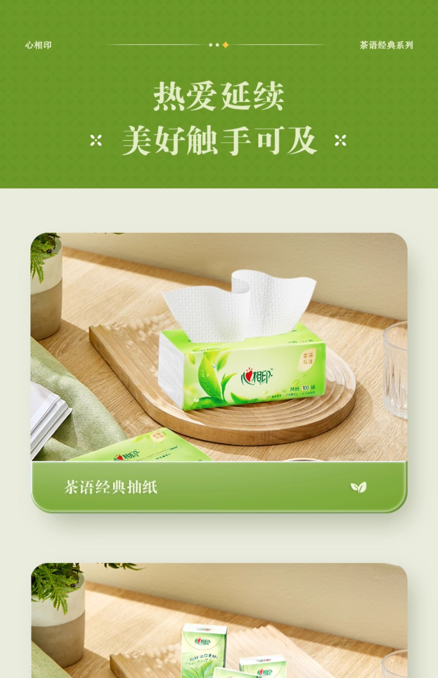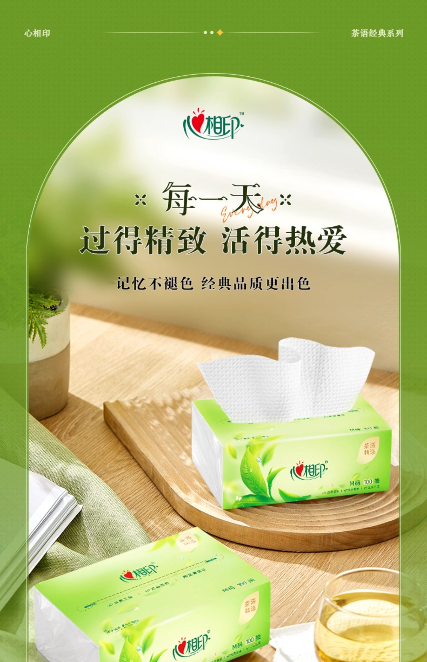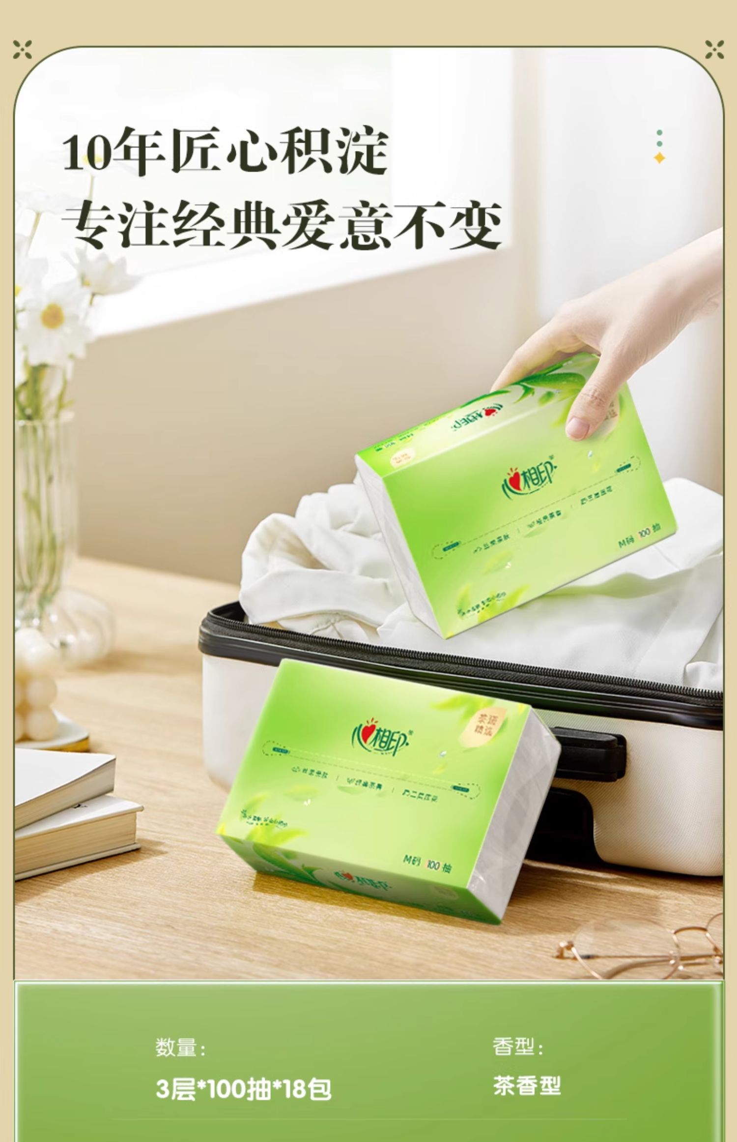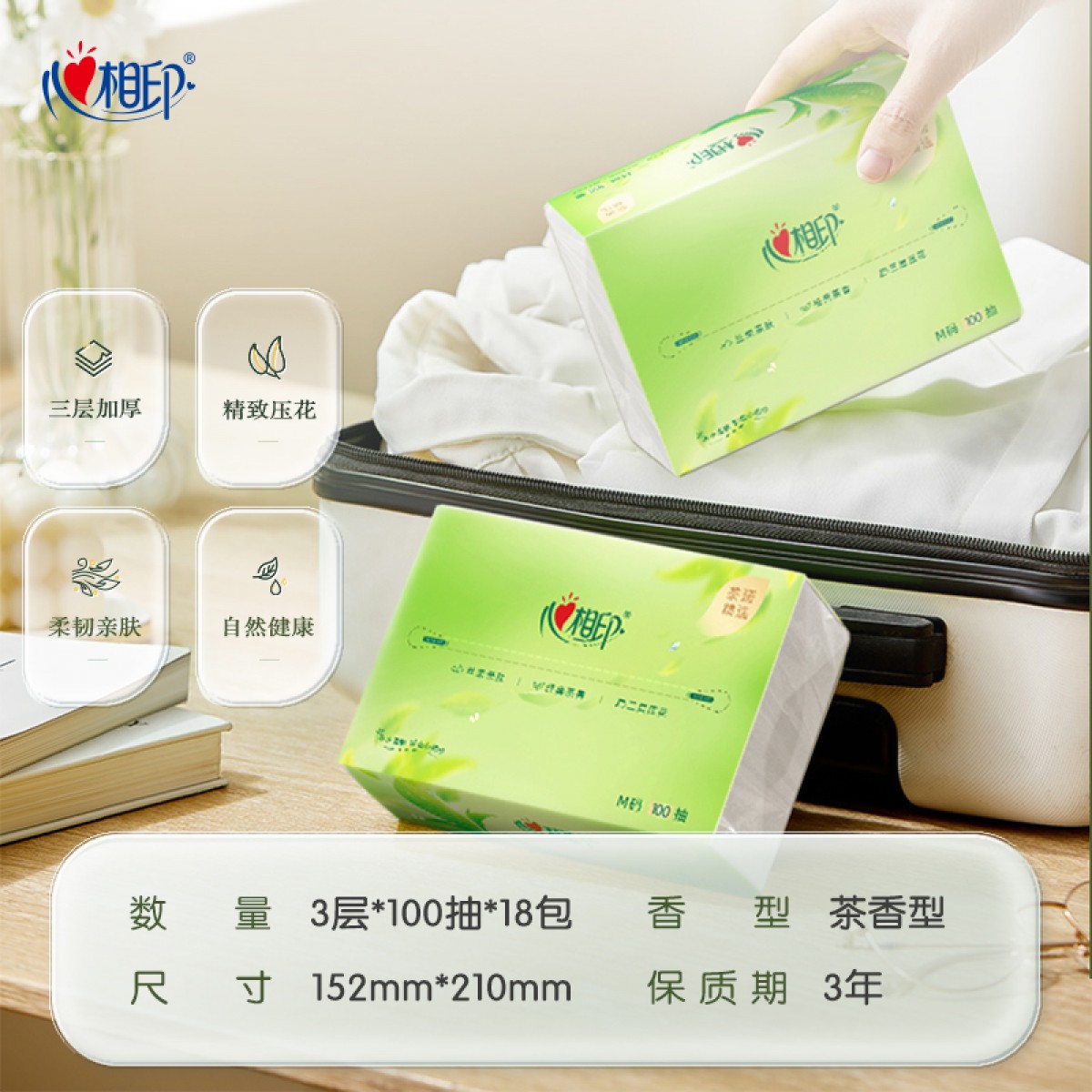 商品名称:心相印 茶语经典系列100抽三层塑装纸面巾18包/箱(M码) DT3100 (箱装)