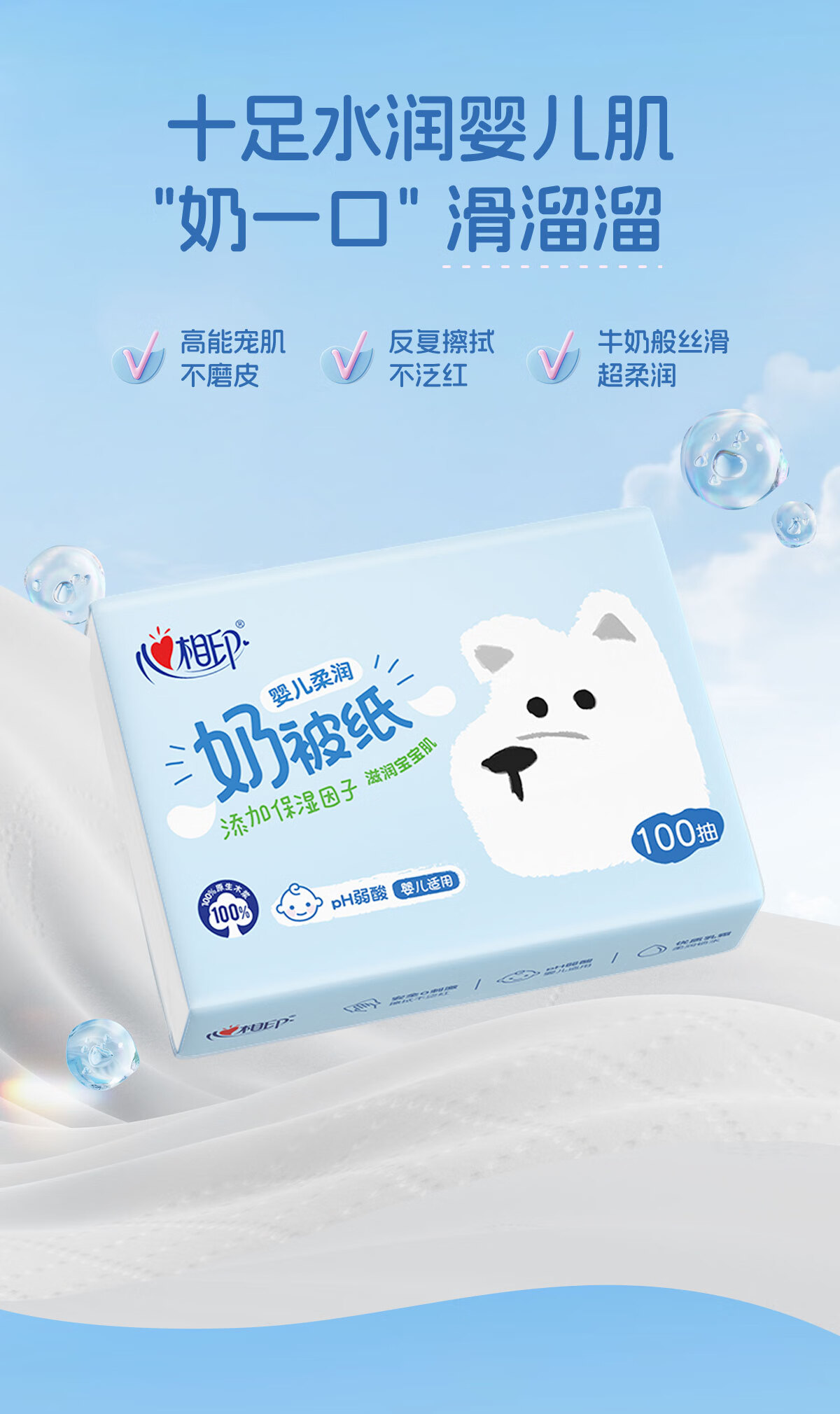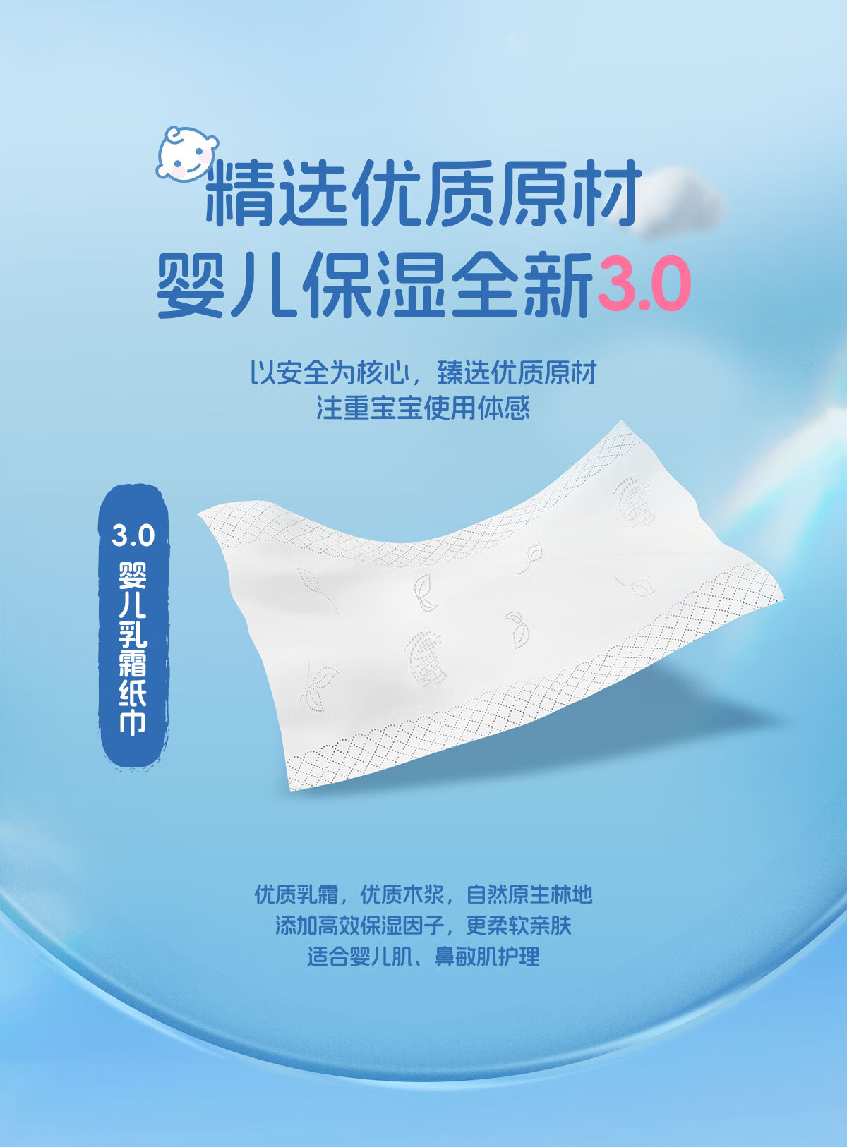 心相印 婴儿柔润奶被乳霜纸18包100抽三层塑装面巾纸 18DT31100(包装)