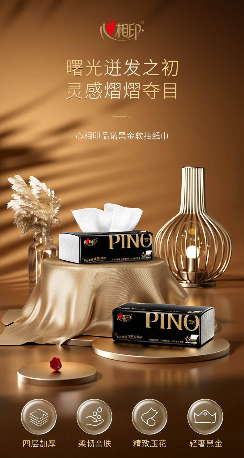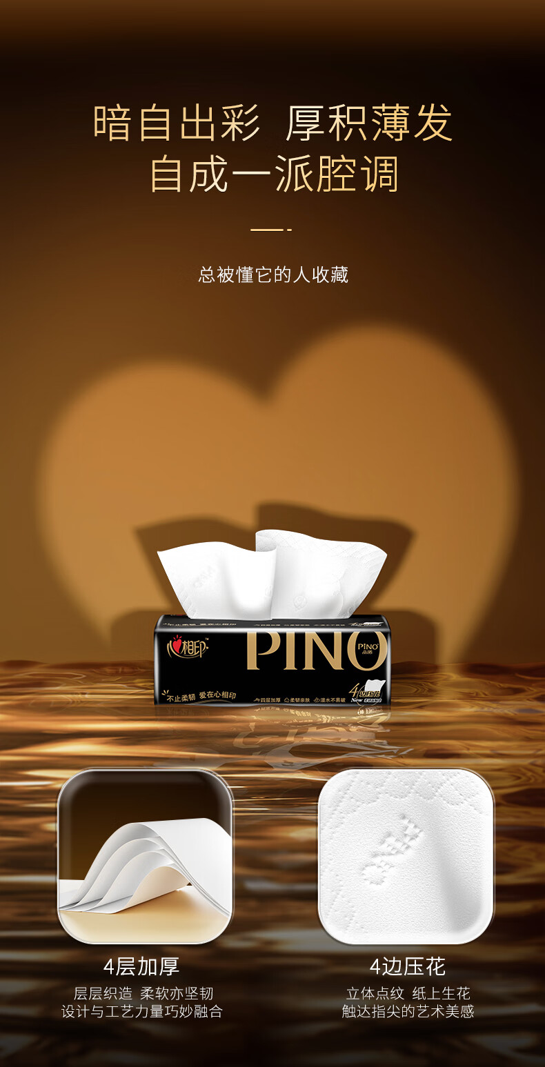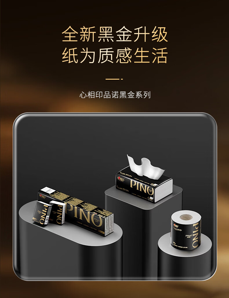 心相印 品诺系列黑色经典90抽16包装四层塑装纸面巾(加大M码) PDT3090(箱装)