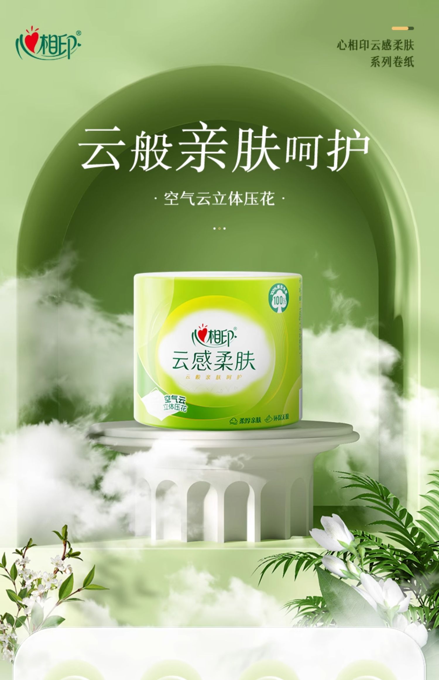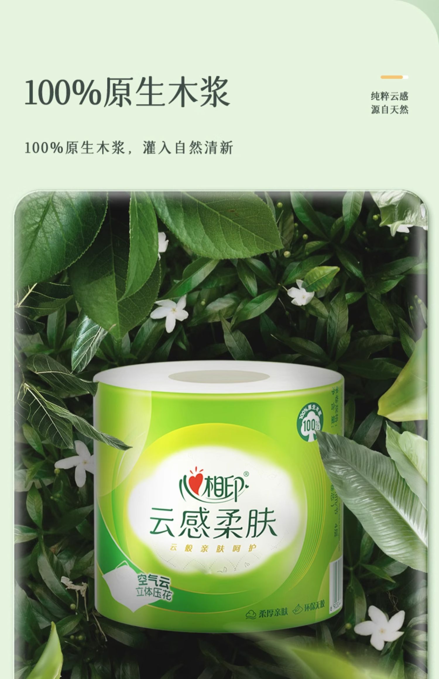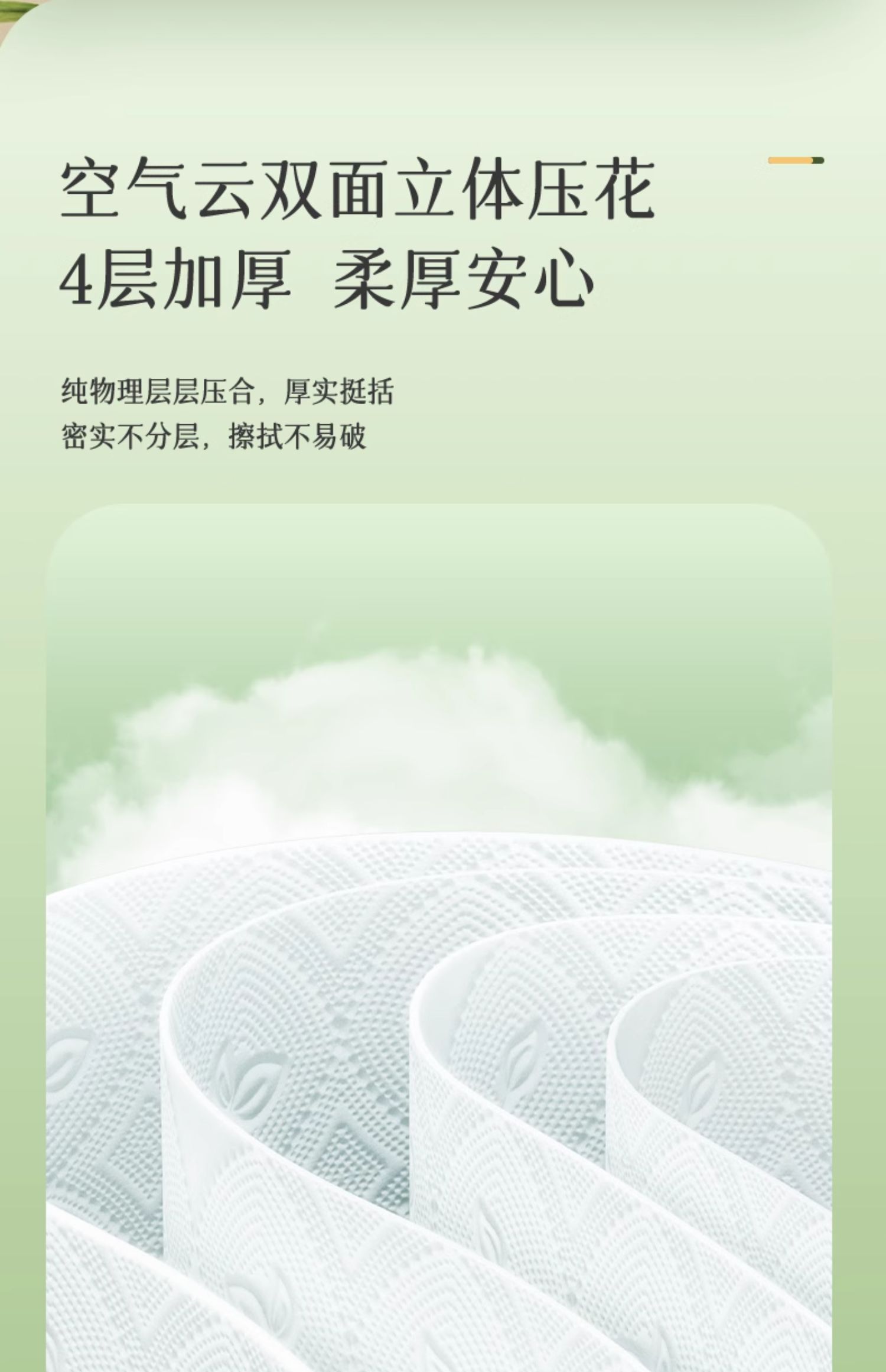 心相印 云感系列150克10粒装四层立体压花卷筒卫生纸 BT5410(提装)