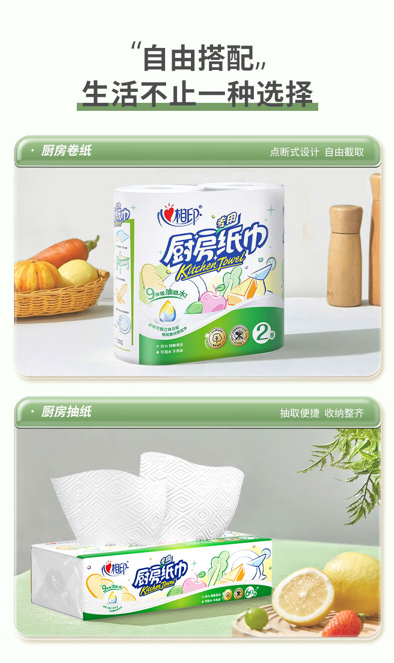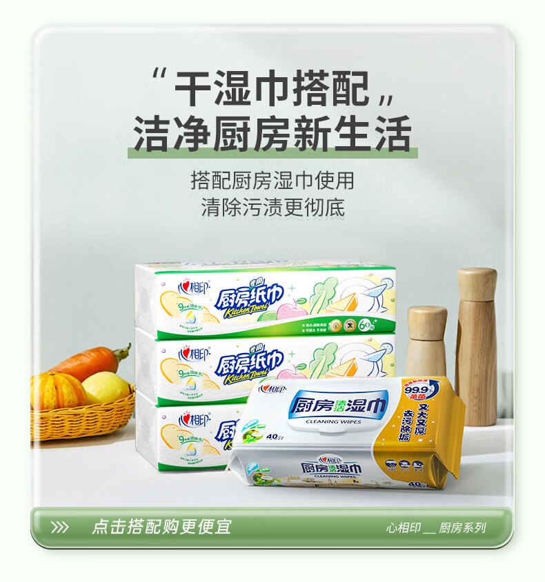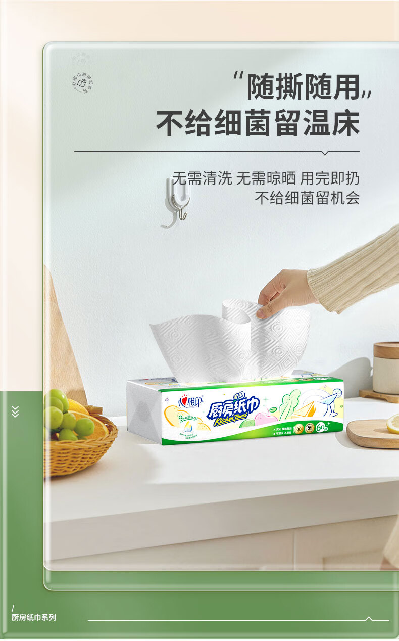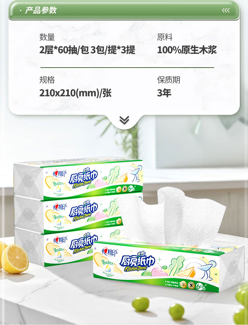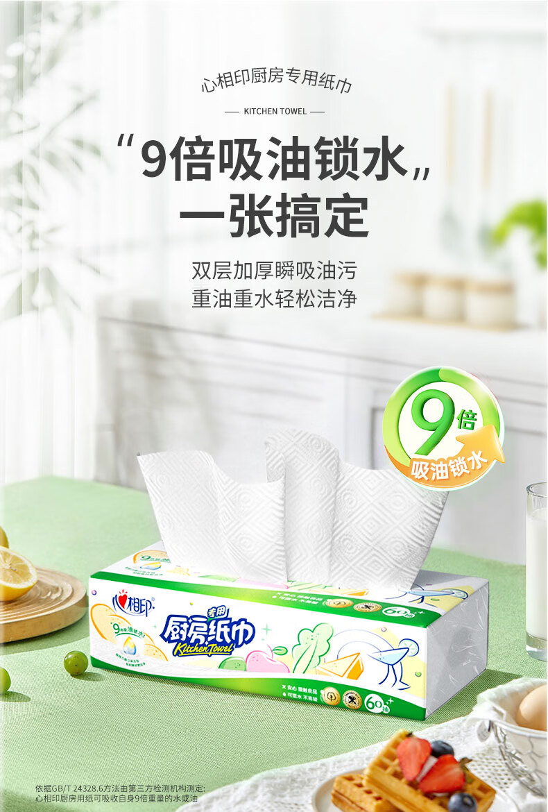 商品名称:心相印 60抽9包塑装无印花厨房纸巾 KDT360(箱装)