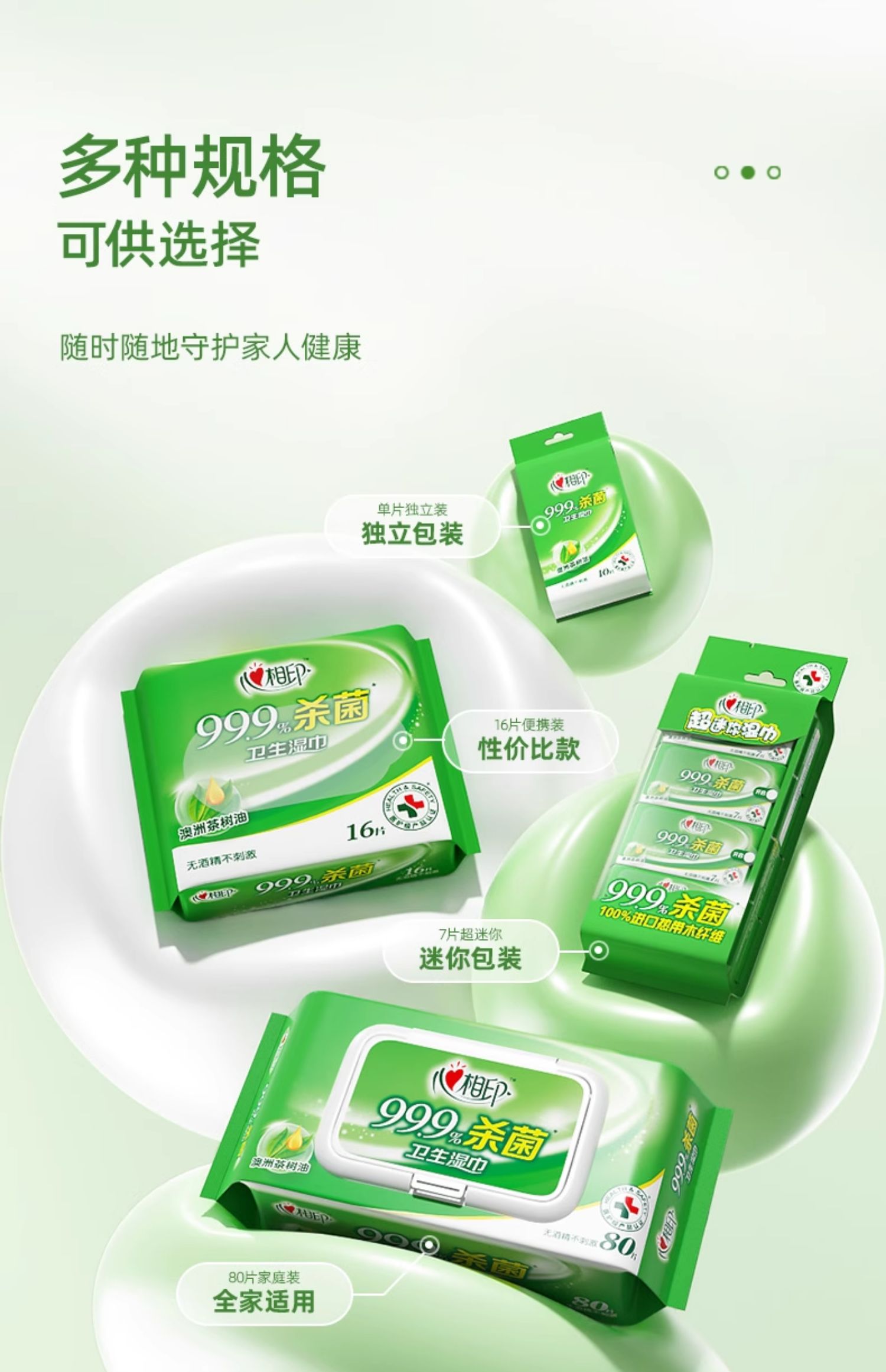 心相印 湿巾杀菌卫生系列迷你型7片*8包*3提 3XCA007+P1(提装)