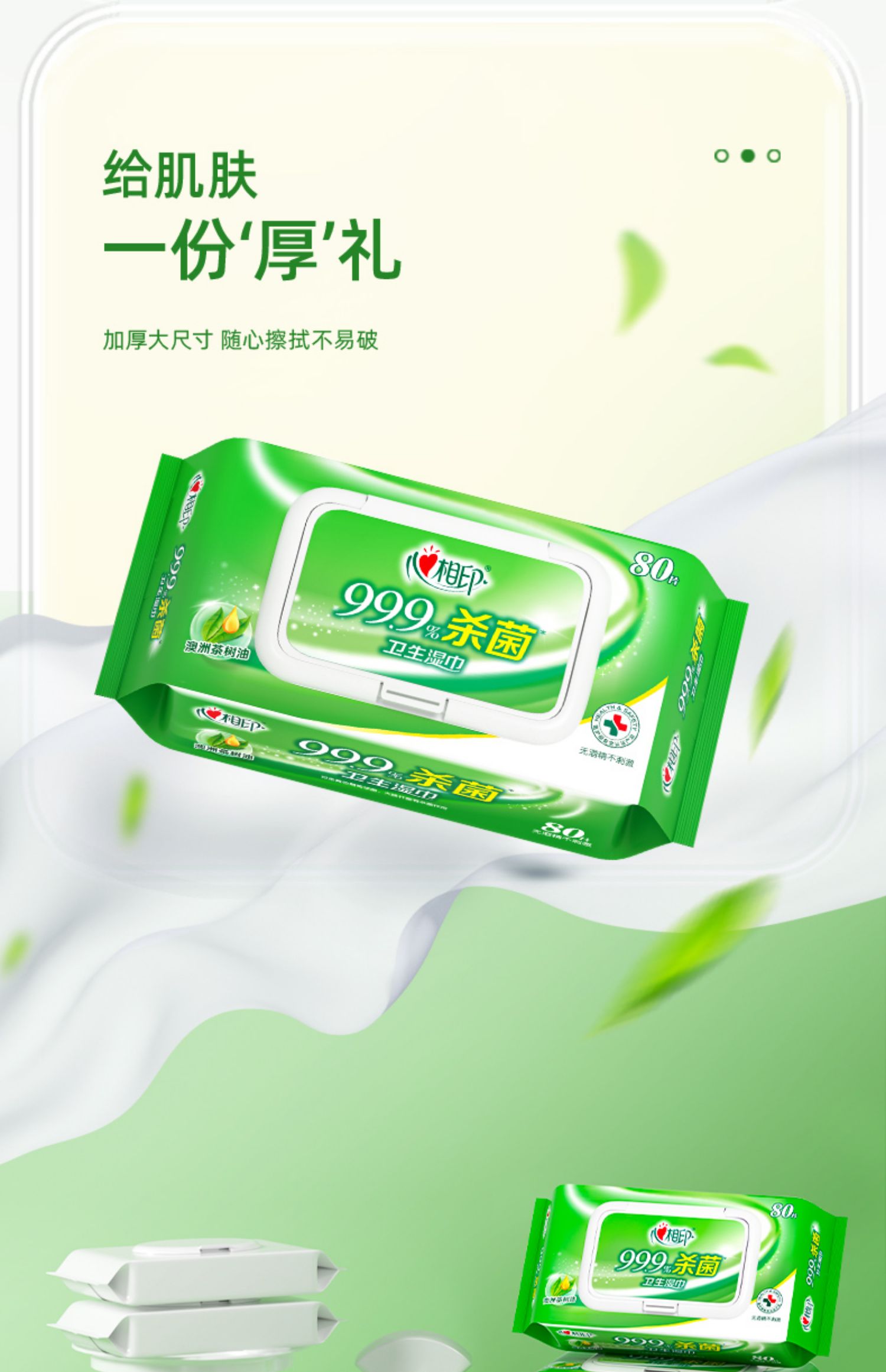 心相印 湿巾杀菌卫生系列带盖抽取 80抽装*3 3XCA080(包装)