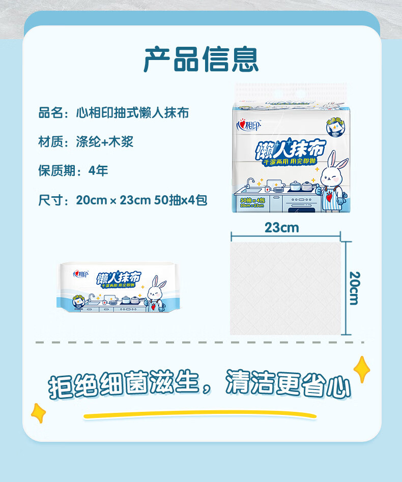 商品名称:心相印 抽取式懒人抹布2023 4JXL050(单提)