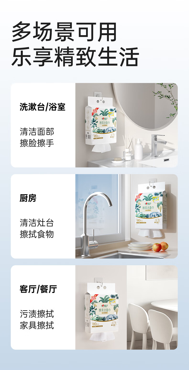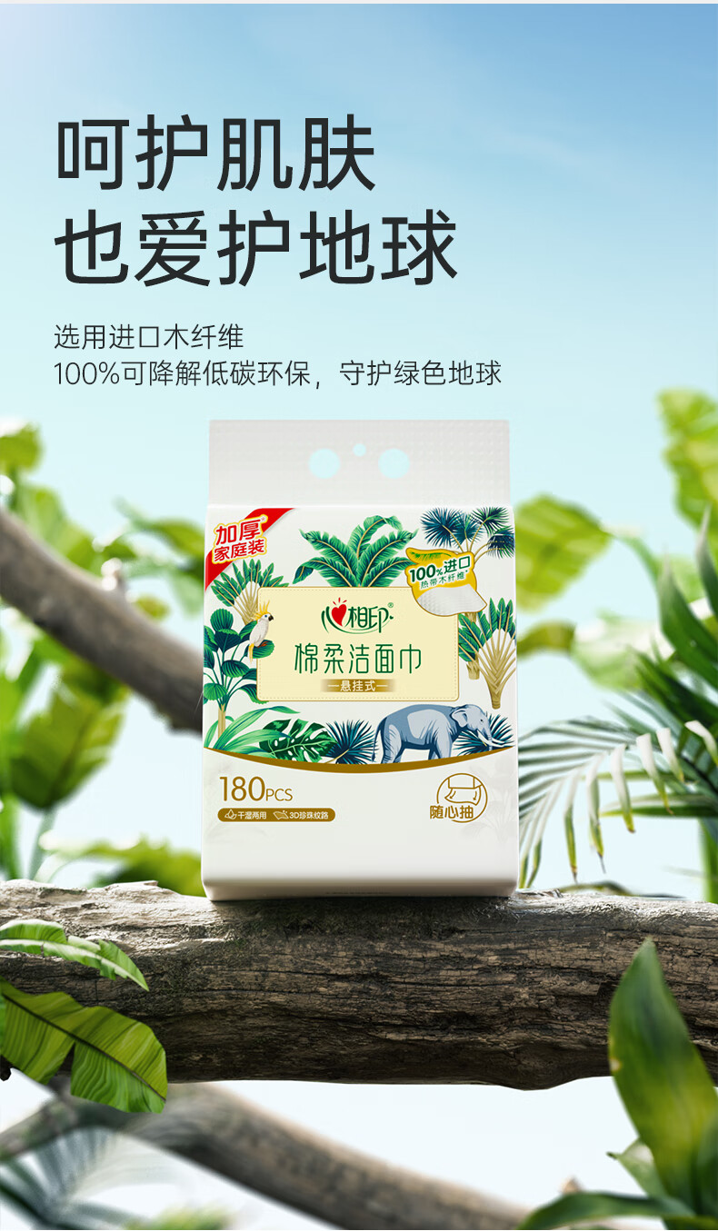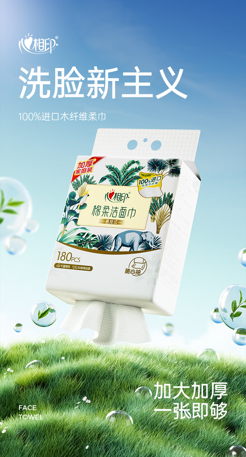 心相印 棉柔系列180片装悬挂式洗脸巾(随心抽)*2提 XCD180+P1