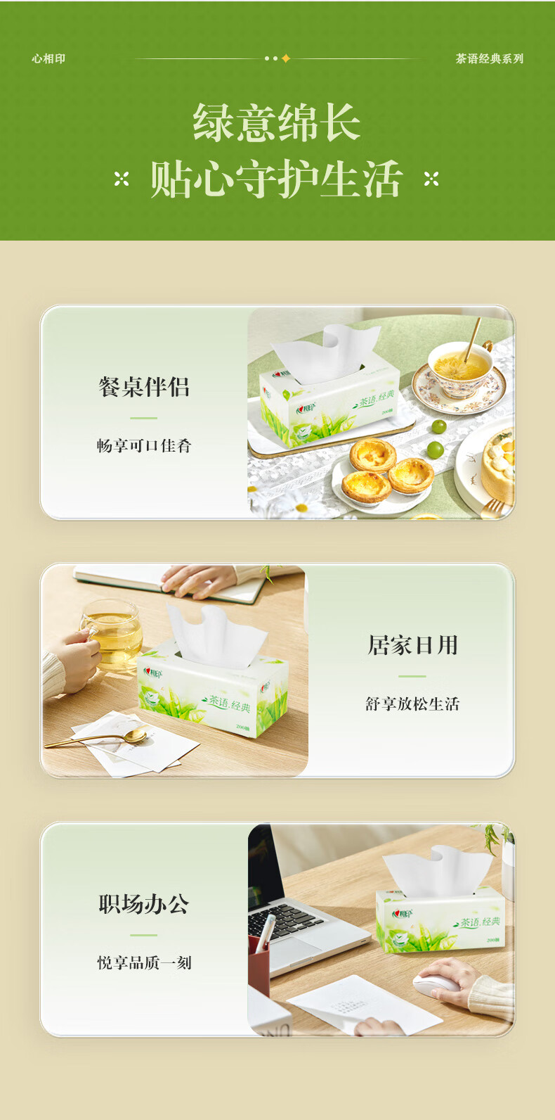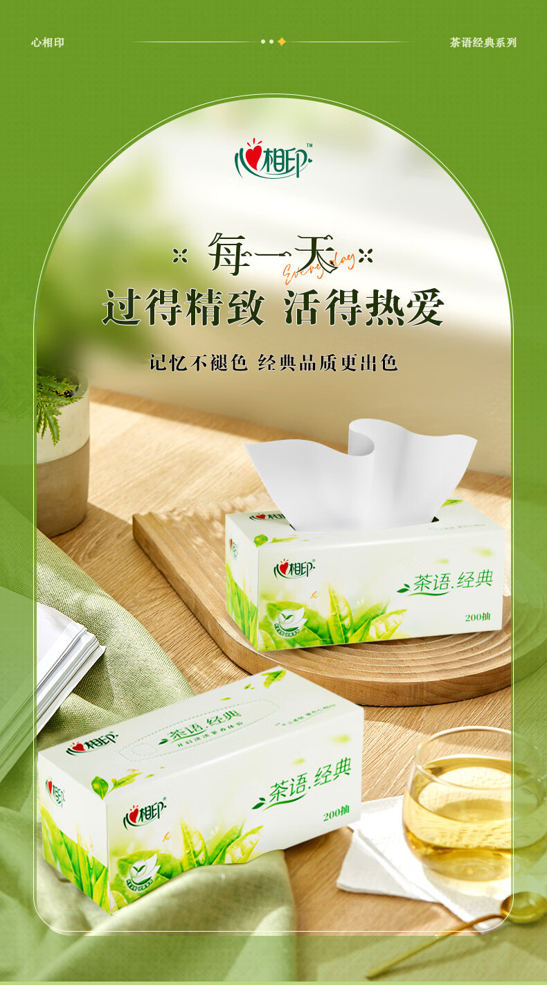 心相印 茶语系列200抽12盒二层盒装纸面巾 H200(箱装)