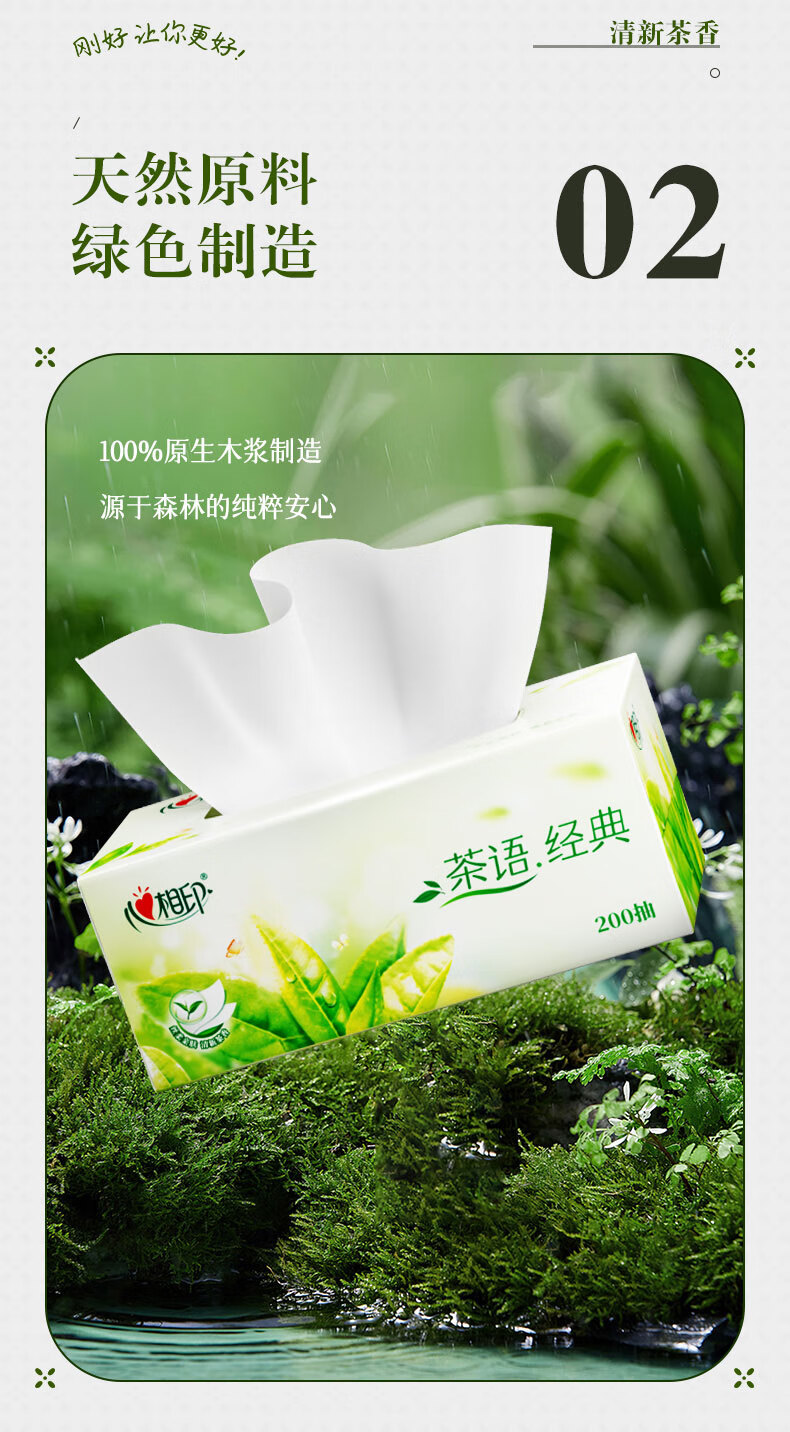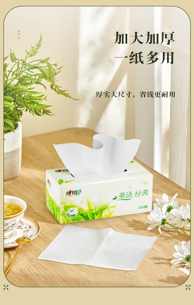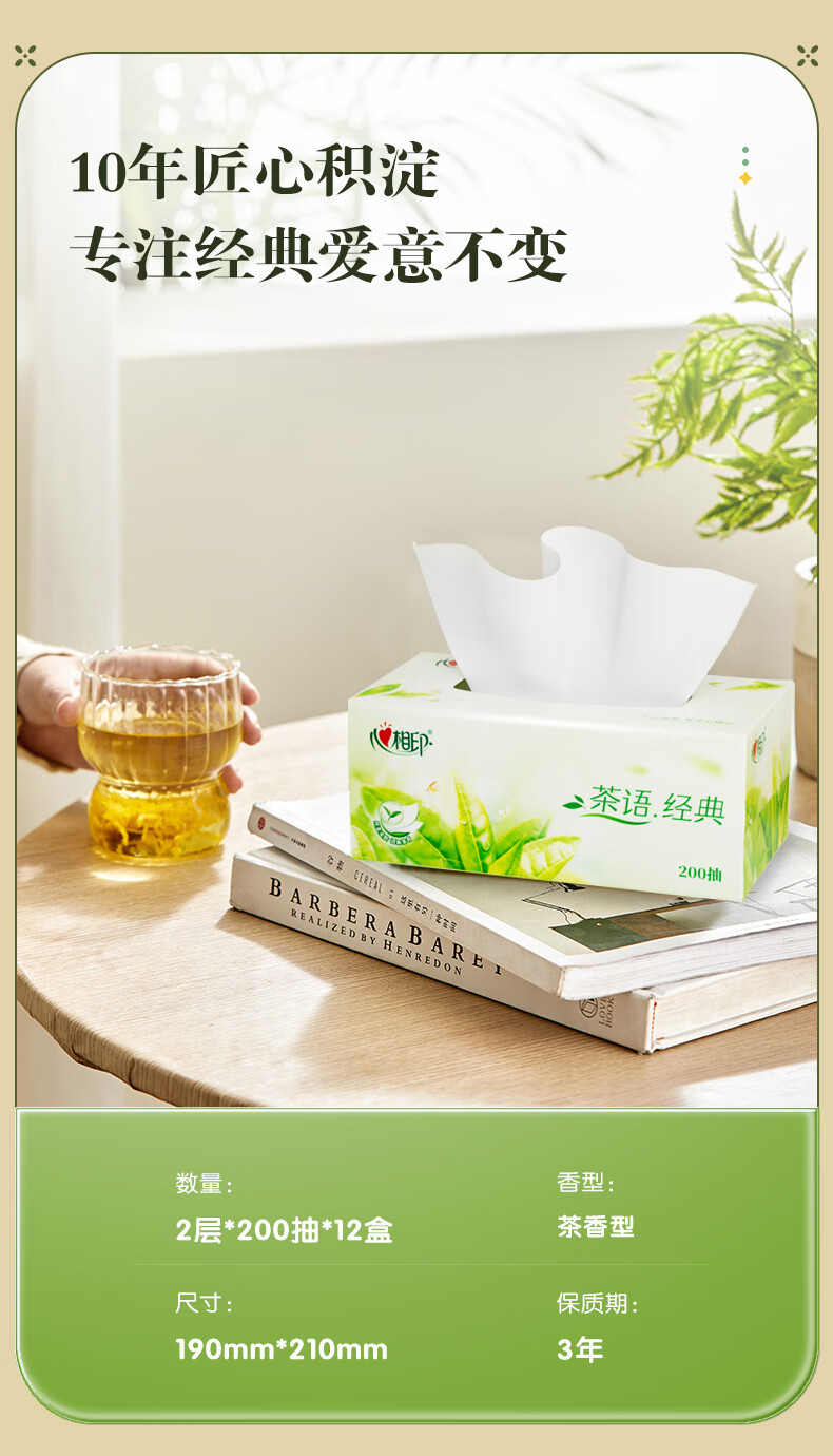 商品名称:心相印 茶语系列200抽12盒二层盒装纸面巾 H200(箱装)