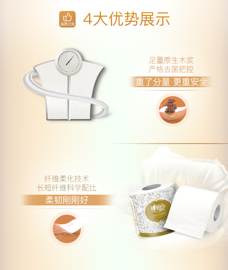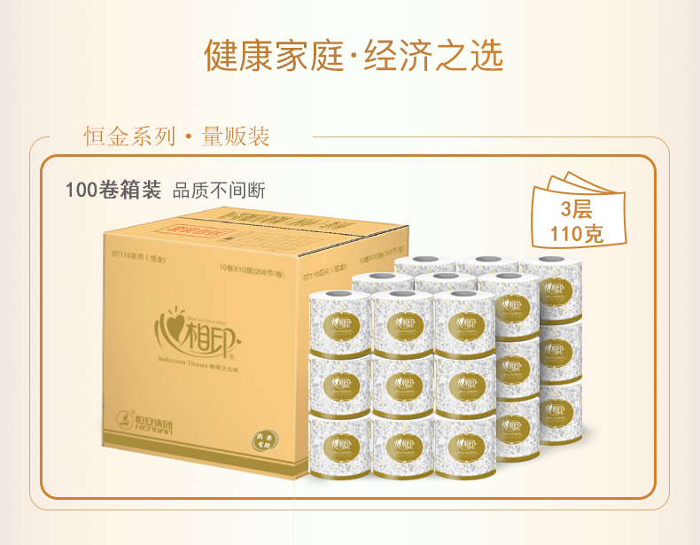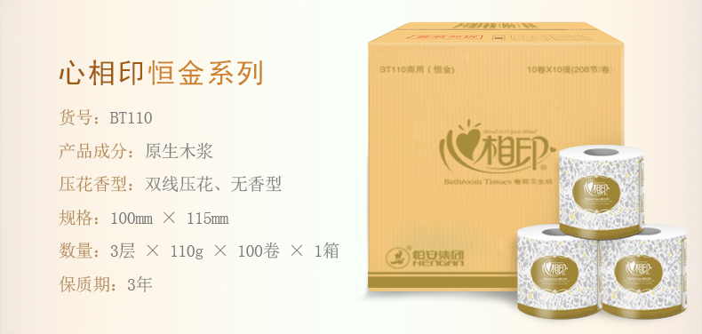 商品名称:心相印 商用金色三层卫生卷纸(110克*100粒) BT110(箱装)