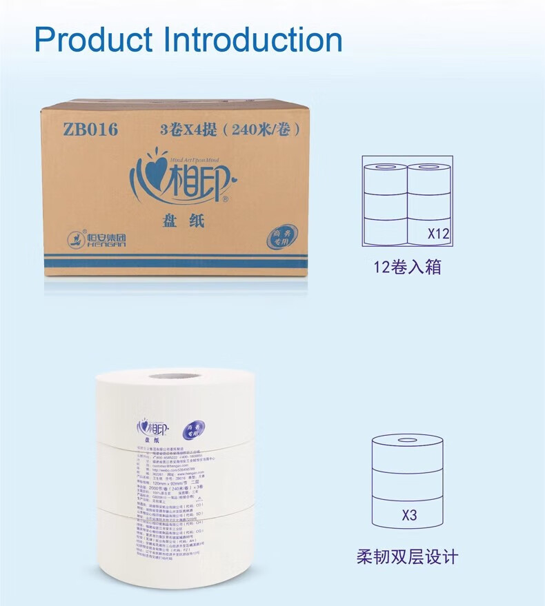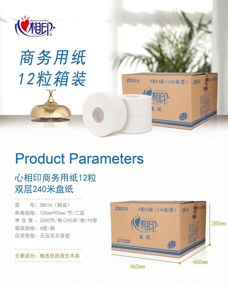商品名称:心相印 商用两层240米大盘纸卫生纸(12卷) ZB016(箱装)