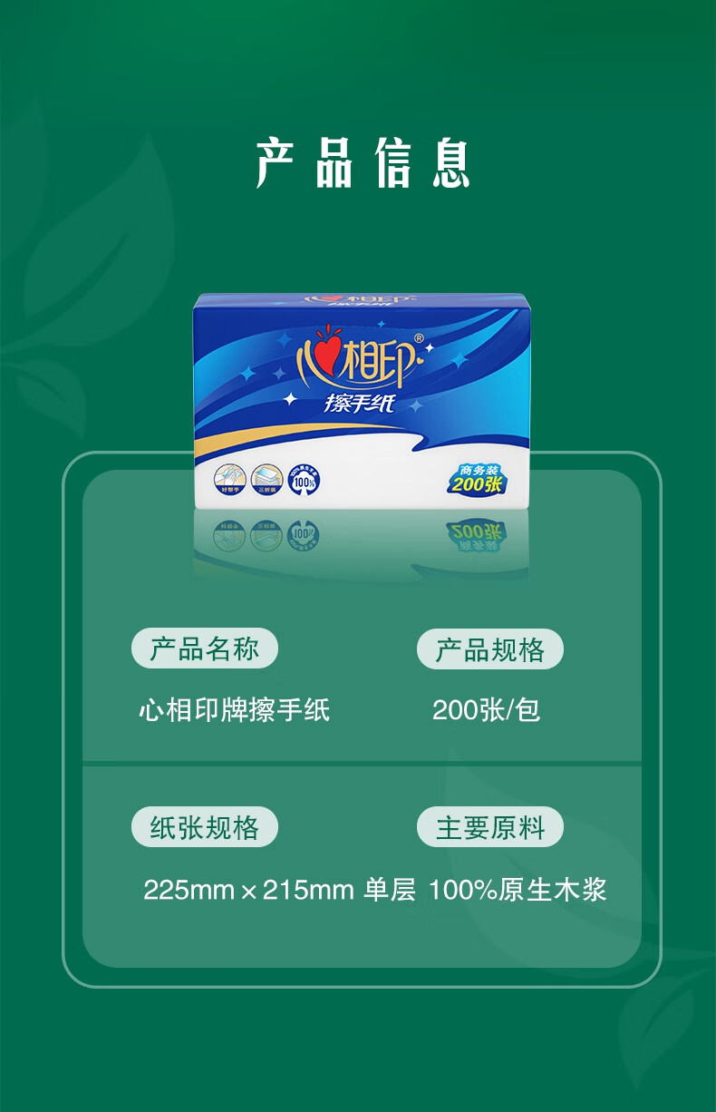 心相印 商用心相印200抽单层擦手纸(20包) PT3200(箱装)