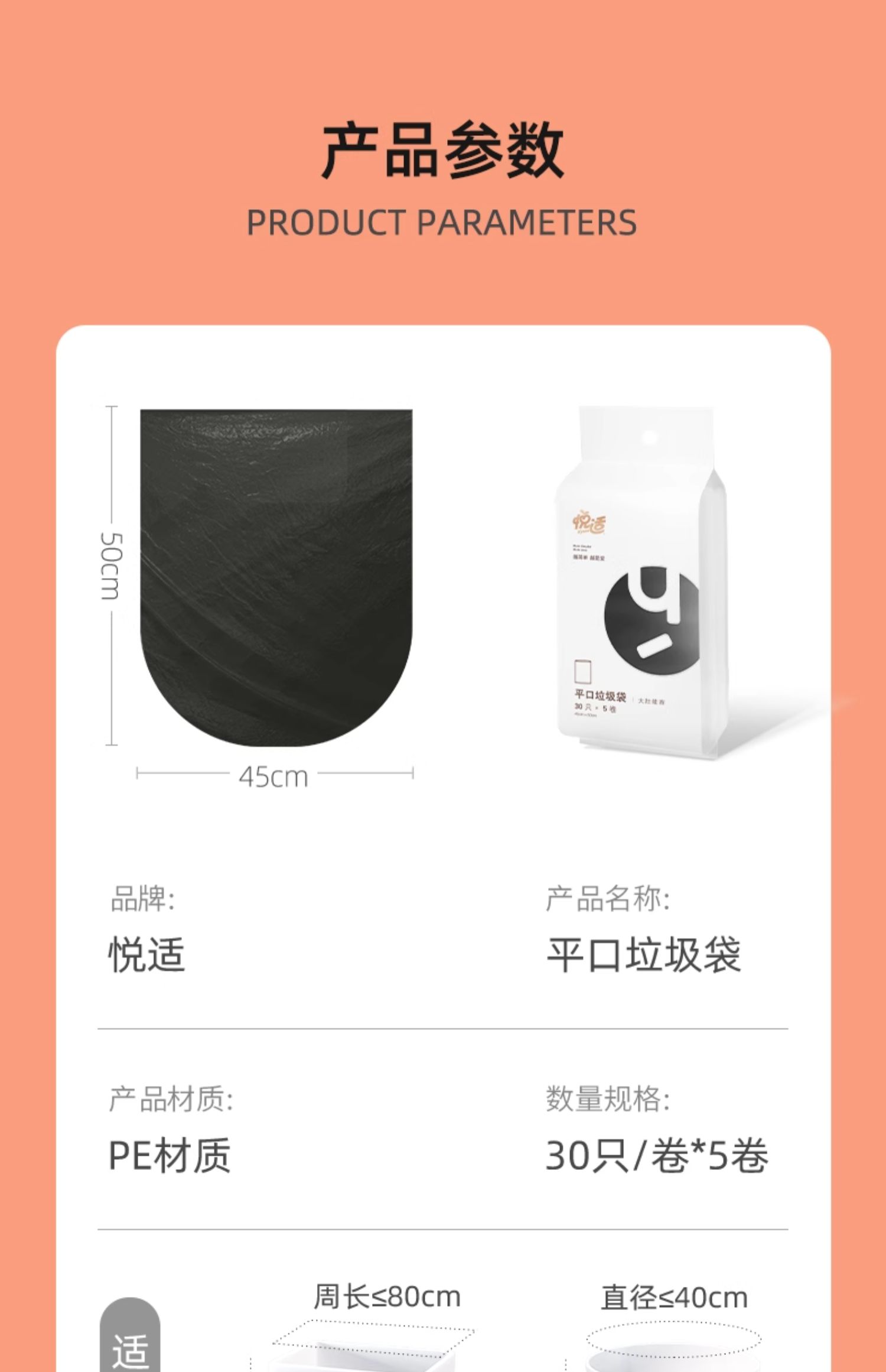 商品名称:悦适 抽绳式清洁袋垃圾袋白色三卷(45cm*50cm)60只装*1包 QZCKE060(包装)