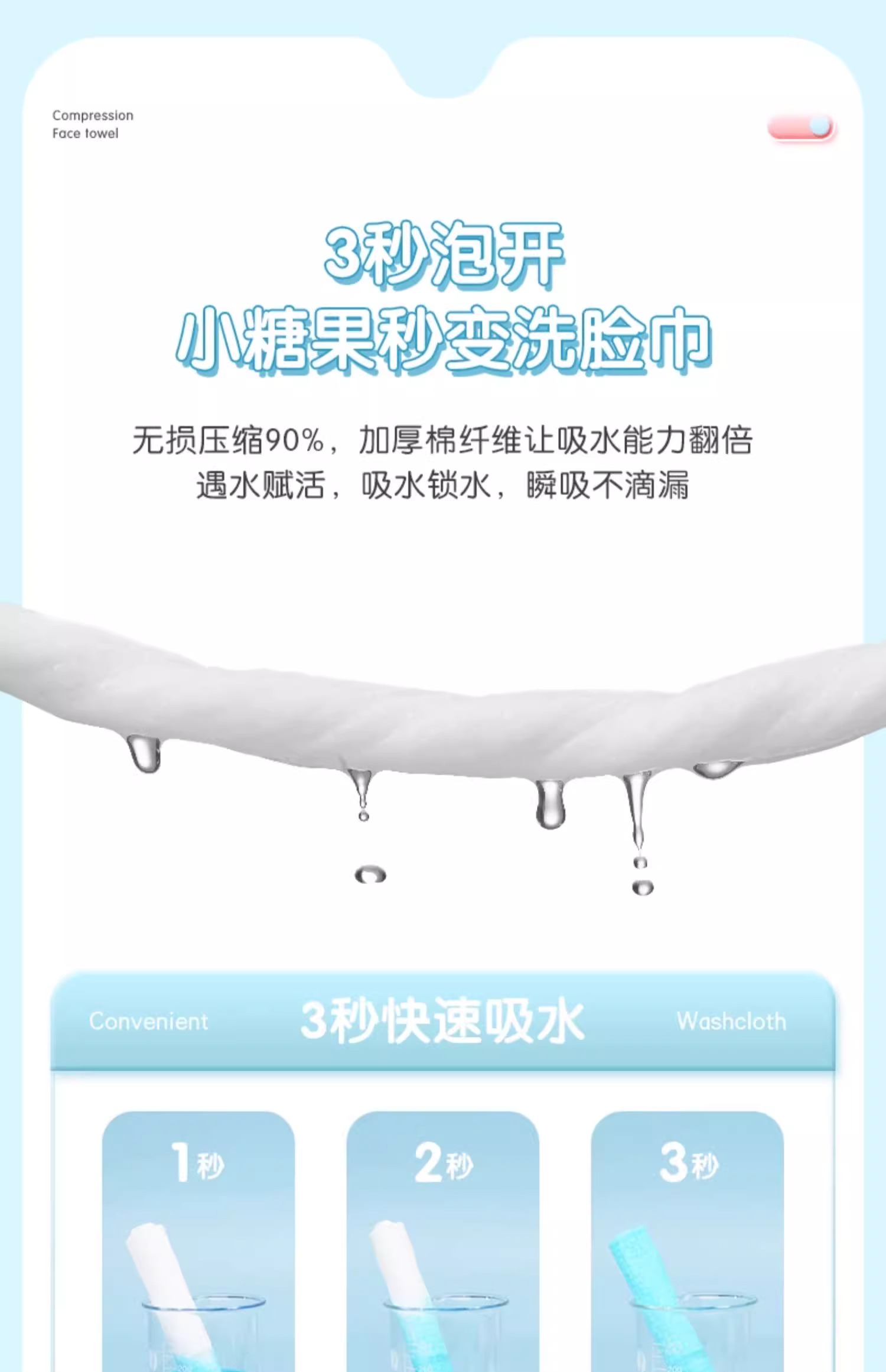 尺寸 :压缩尺寸:3.7CMX 3.7CM 泡开尺寸:25CMX 30CM
