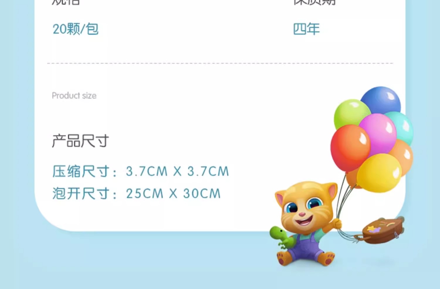 压缩尺寸:3.7CMX 3.7CM 泡开尺寸:25CMX 30CM