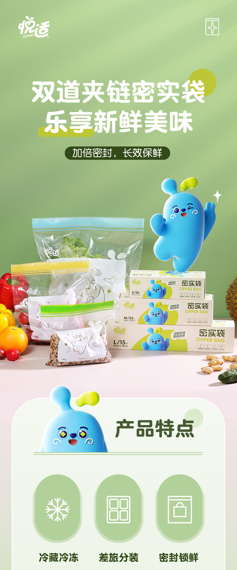 商品名称:悦适 密实袋大中小号共70只组合装 ZHH030+ZHB025A+ZHC015A(盒装)