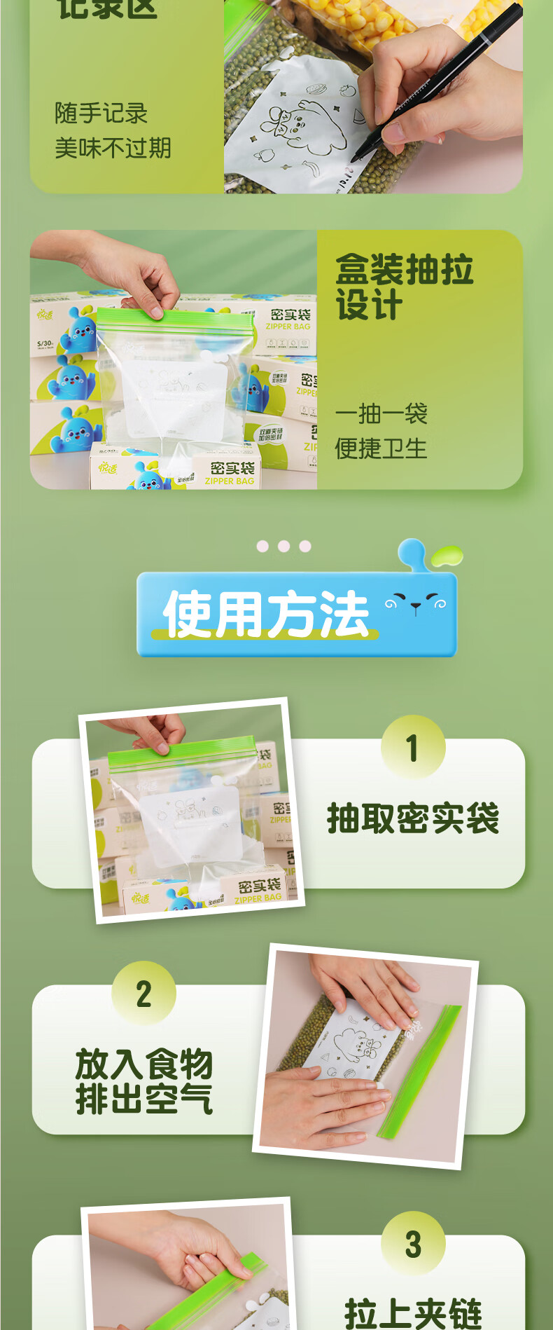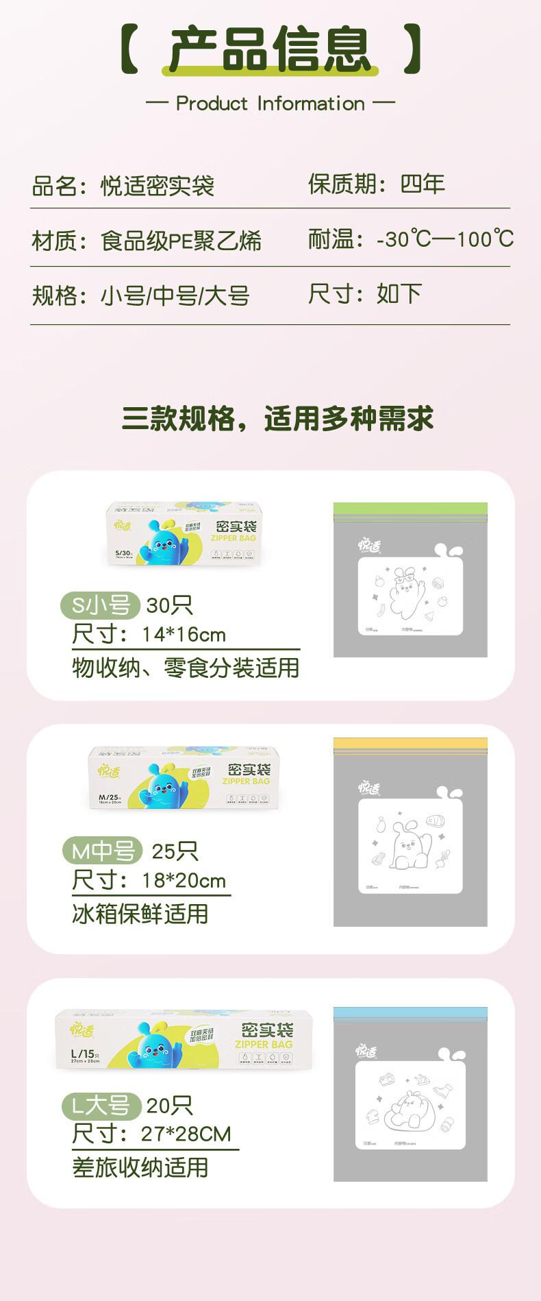悦适 密实袋大中小号共70只组合装 ZHH030+ZHB025A+ZHC015A(盒装)