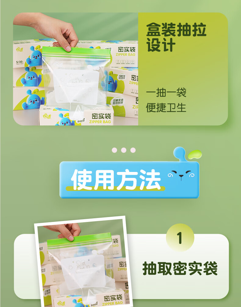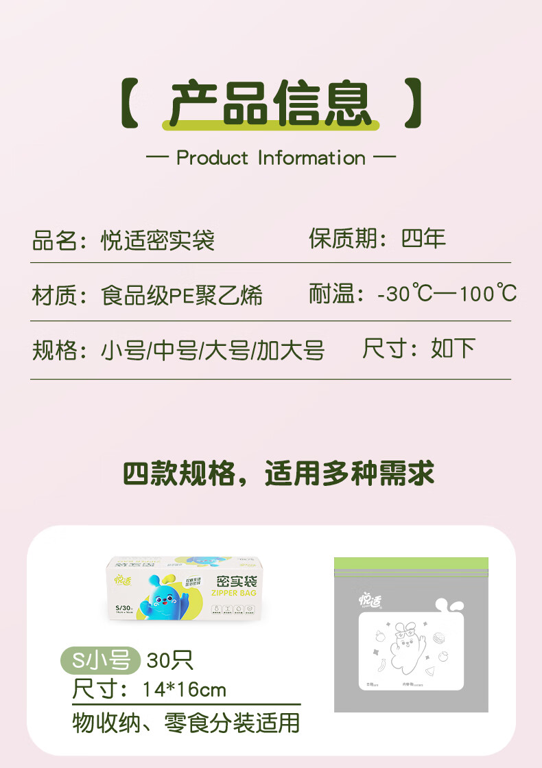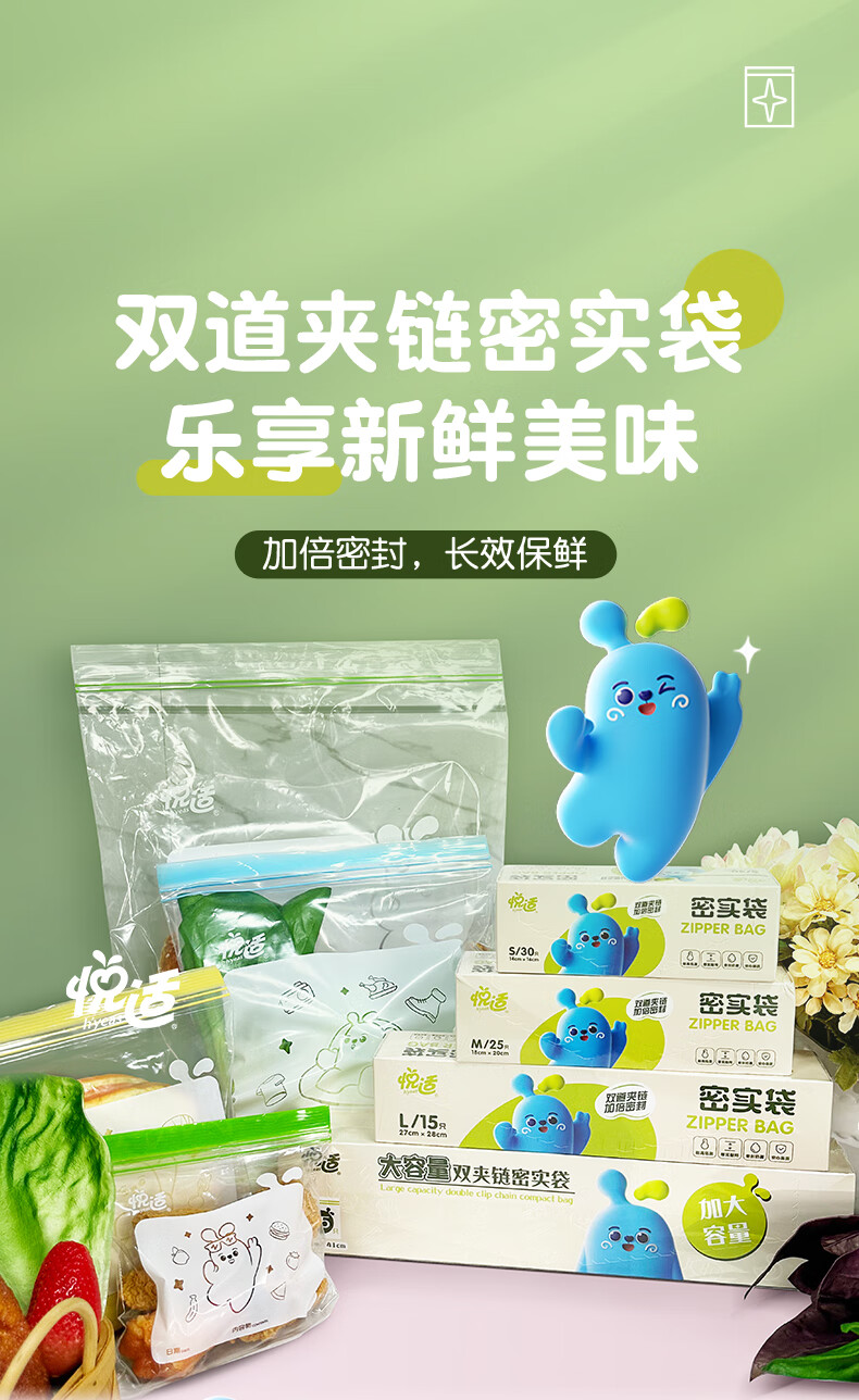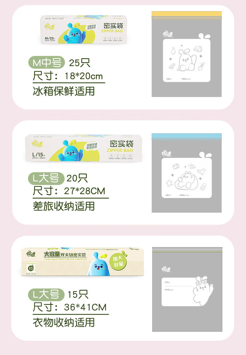 商品名称:悦适 双夹链密实袋超大号15只装 ZG3641(盒装)