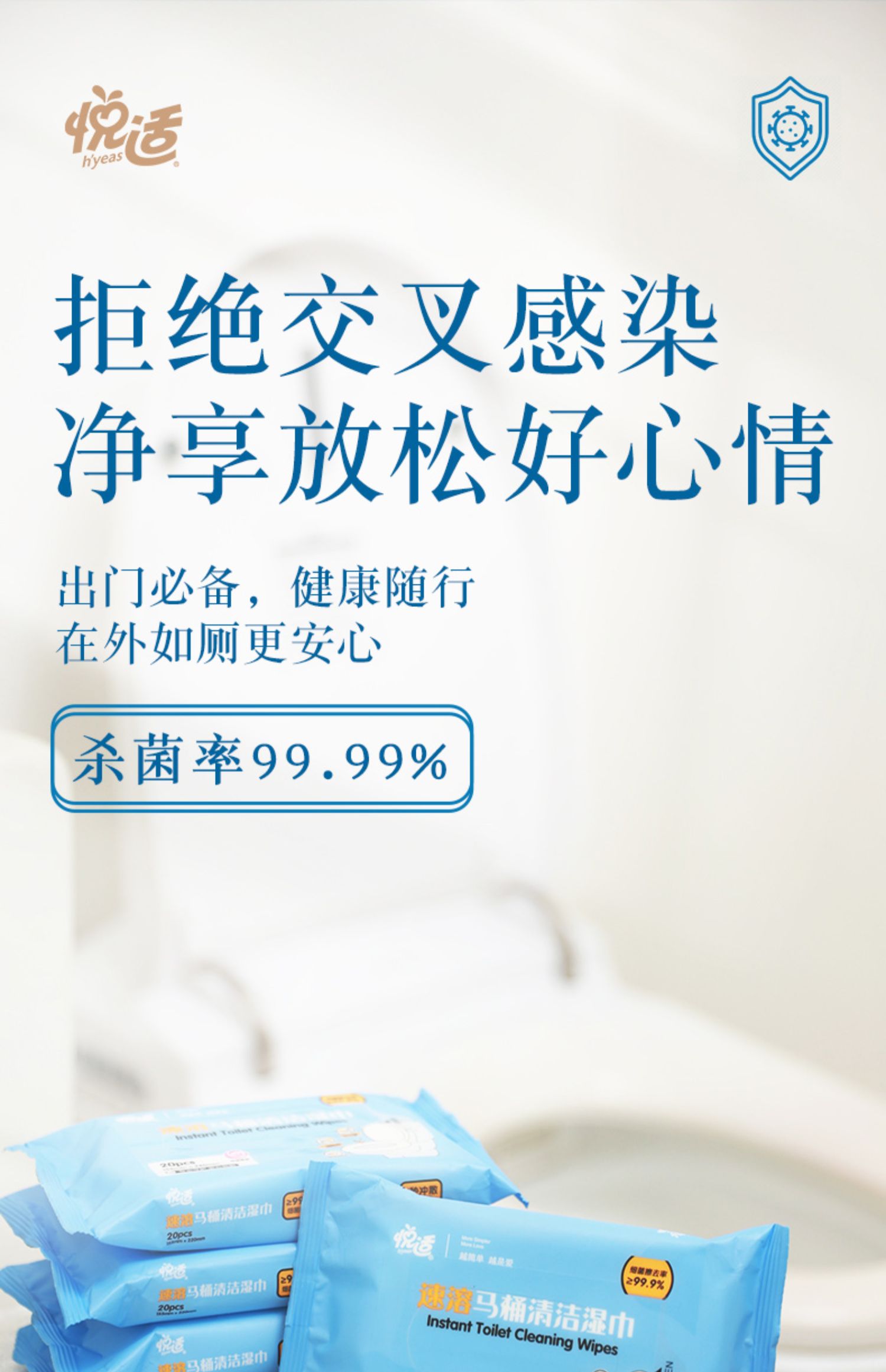 悦适 速溶马桶清洁湿巾20片*5包组套 5J020(包装)